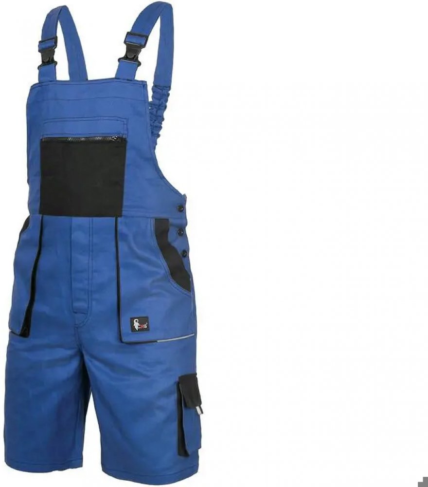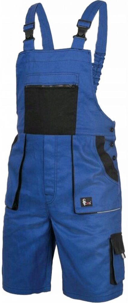 Pánské montérkové kraťasy s náprsenkou, náprsní kapsa na zip, pas na knoflíky, vzadu do gumy, přední kapsy, boční kapsa na svinovací / skládací metr, boční kapsa na mobil / peněženku, zadní kapsa s klopou, šle s gumou vzadu. Doporučené použití: letní pracovní oděv, stavebnictví, strojírenství, lehký průmysl, automobilový průmysl, logistika, skladová manipulace, spedice, autoservisy, údržba, montáž...