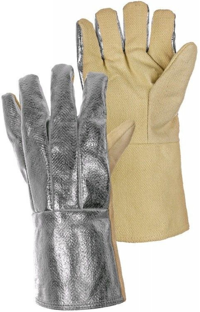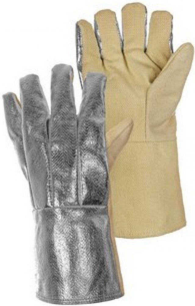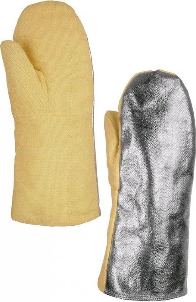 Rukavice Canis MEFISTO M5 DM, tepluodolné. Tepelně odolné rukavice šité Kevlar nití. Chrání před sálavým teplem a odstřikem taveniny. Ochrana do 500 C. Délka rukavice: 27 cm. Doporučené použití: práce s horkými předměty a v prostředí se sálávým teplem. Odvětví: slévárny, hutní průmysl, svářeči. dlaň - aramidová tkanina, hřbet - pokryt hlinikovou folií Foto je pouze ilustrační.