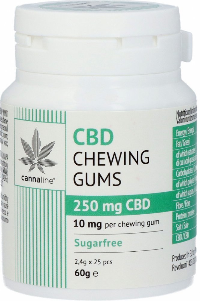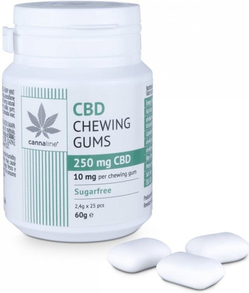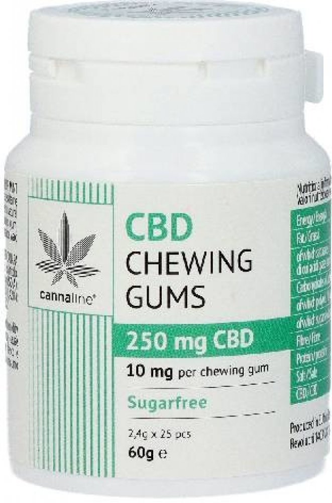 Složení: sladidla: sorbitol, isomalt, maltitolový sirup, acesulfam k, sukralóza; gumová báze (obsahuje emulgátor: SÓJOVÝ lecitin); příchutě; zahušťovadlo: arabská guma; zvlhčovadlo: glycerol; CBD (0,66%); konopný éterický olej (0,1%), barva: E171; glazura: karnau...