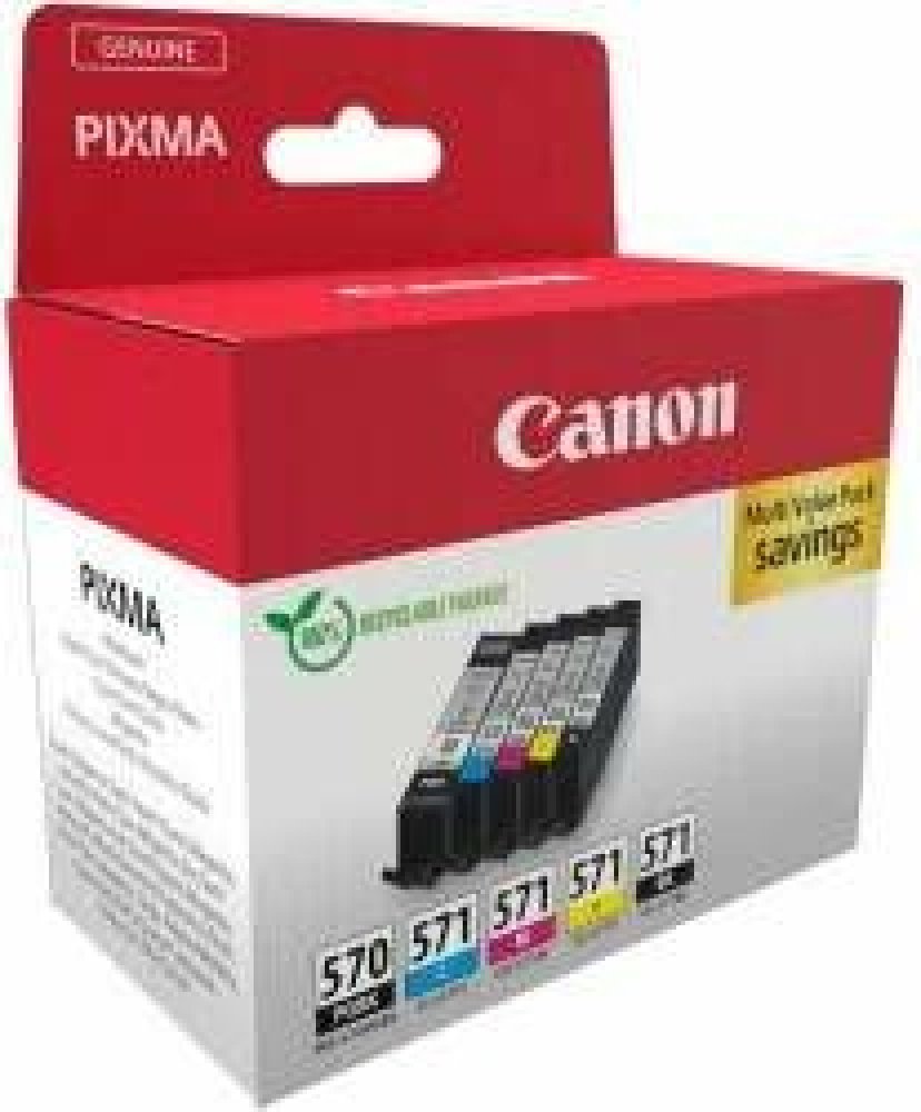 Originální 2 x černá, azurová, purpurová a žlutá cartridge Canon PGI-570 PGBk, CLI-571 C/M/Y/Bk, 0372C006. Obsahuje 15 ml, 4 x 7 ml.