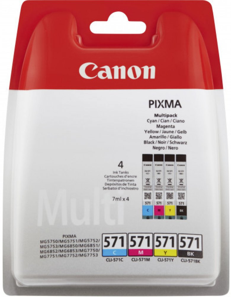 Canon originální ink CLI-571 CMYK Kvalitní inkoust pro dokonalý tisk Vytvářejte působivé dokumenty s dlouhou životností a tiskněte fotografie na své tiskárně Canon pomocí originálního inkoustu Canon CLI-571 CMYK, který bude zcela kompatibilní s vaší tiskárnou. Nejlepší kvalita Nádherná kvalita tisku s dlouhou životností a výjimečnými detaily a barevným a černým textem. Spolehlivější tisk Originální ink 0386C007 od společnosti Canon zajistí, že vaše tiskárna Canon bude vždy spolehlivá. Bezproblémová konzistence Konzistentní kvalita a bezproblémový výkon tiskárny Canon s měkkými barvami a detailní černou. Některé věci lépe fungují spolu. Kombinací tiskárny a originálních inkoustových kazet Canon spolu s fotografickým papírem zajistíte optimální výkon a dokonalou kvalitu při každém tisku. Specifikace NázevCanon originální ink CLI-571 CMYKOEM0386C007Barvačerná/color