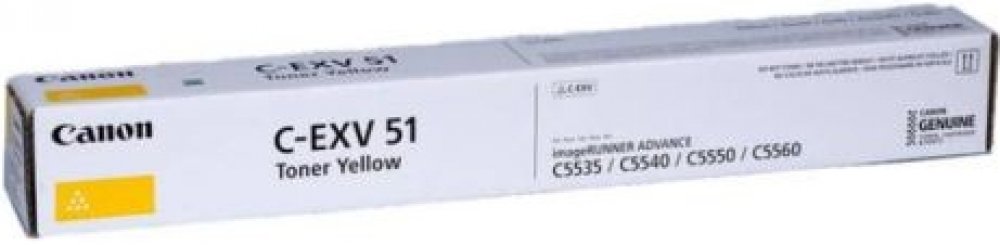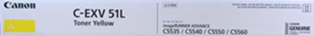 Canon originální toner C-EXV51L Y Kvalitní tonerová kazeta pro dokonalý tisk Vytvářejte působivé dokumenty s dlouhou životností a tiskněte kvalitně a s vysokým výkonem na své tiskárně Canon pomocí originálního toneru Canon C-EXV51L Y, který bude zcela kompatibilní s vaší tiskárnou. Nejlepší kvalita Nádherná kvalita tisku s dlouhou životností a výjimečnými detaily a barevným a černým textem. Spoleh...
