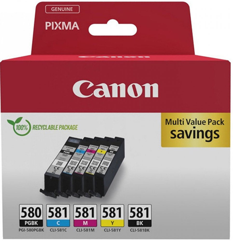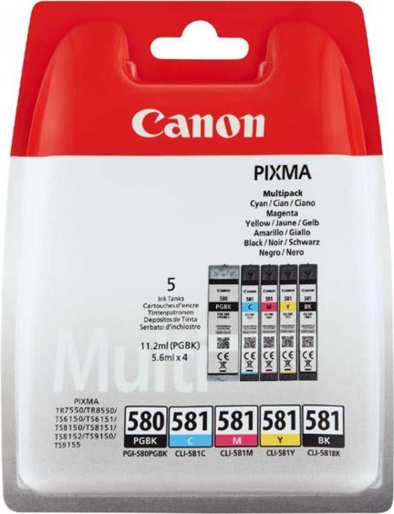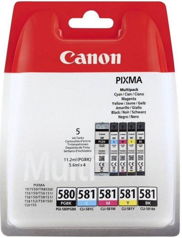 Originální cartridge (inkoust) Canon PGI-580, CLI-581 (2078C005). Barva: Černá + barevná. Kapacita: 11,2ml/4x5,6ml.