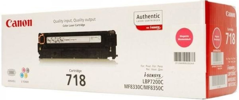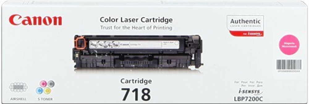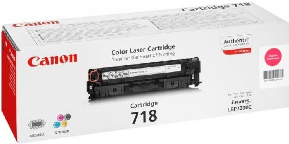 Toner Canon 718, CRG-718, 2660B002 od značky Canon je originální náplní určenou pro laserové tiskárny, která zajišťuje spolehlivý výkon a vynikající výsledky tisku. Tento model v barvě purpurová (magenta) nabízí profesionální úroveň výtisků, díky čemuž je vhodný pro každodenní použití v domácnosti i v náročnějším kancelářském prostředí.