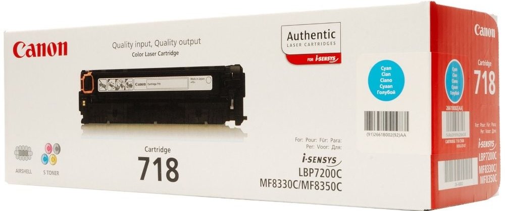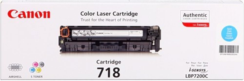 Toner Canon 718, CRG-718, 2661B002 od značky Canon je originální náplní určenou pro laserové tiskárny, která zajišťuje spolehlivý výkon a vynikající výsledky tisku. Tento model v barvě azurová (cyan) nabízí profesionální úroveň výtisků, díky čemuž je vhodný pro každodenní použití v domácnosti i v náročnějším kancelářském prostředí.