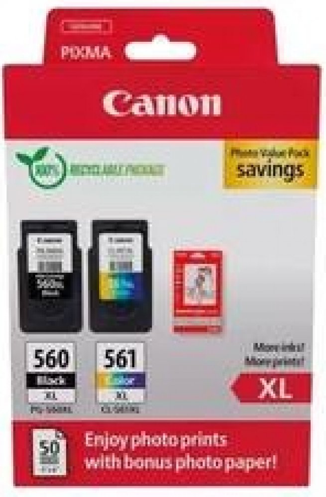 Originální inkoustová kazeta (cartridge) Canon PG-560 XL + CL-561 XL + GP-501, 3712C008 v barvě multipack. Jeho kapacita je 400 + 300 stran. Cartridge od výrobce Canon splňuje mezinárodní standardy, díky čemuž je garantována vysoká kvalita tisku.