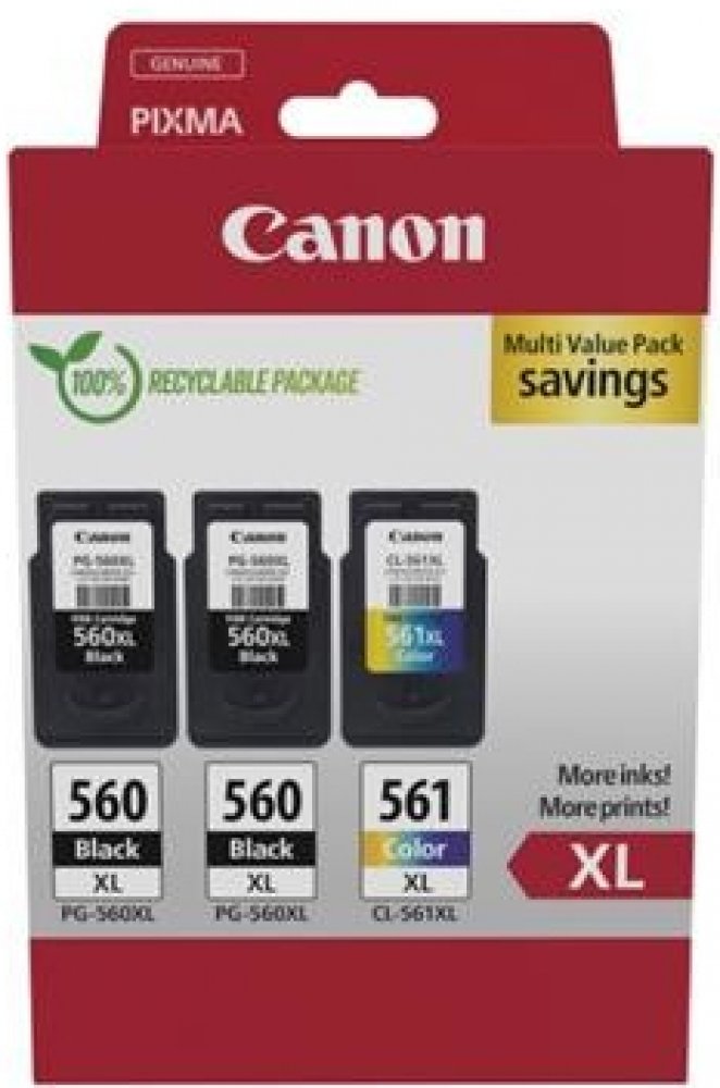 Canon cartridge PG-560XL (2x černá) / CL-561XL (1x barevná) Multipack PG-560XLx2/CL-561XL MULTI Ink Value Pack (XL Black x2 & XLColour Cartridges) pro