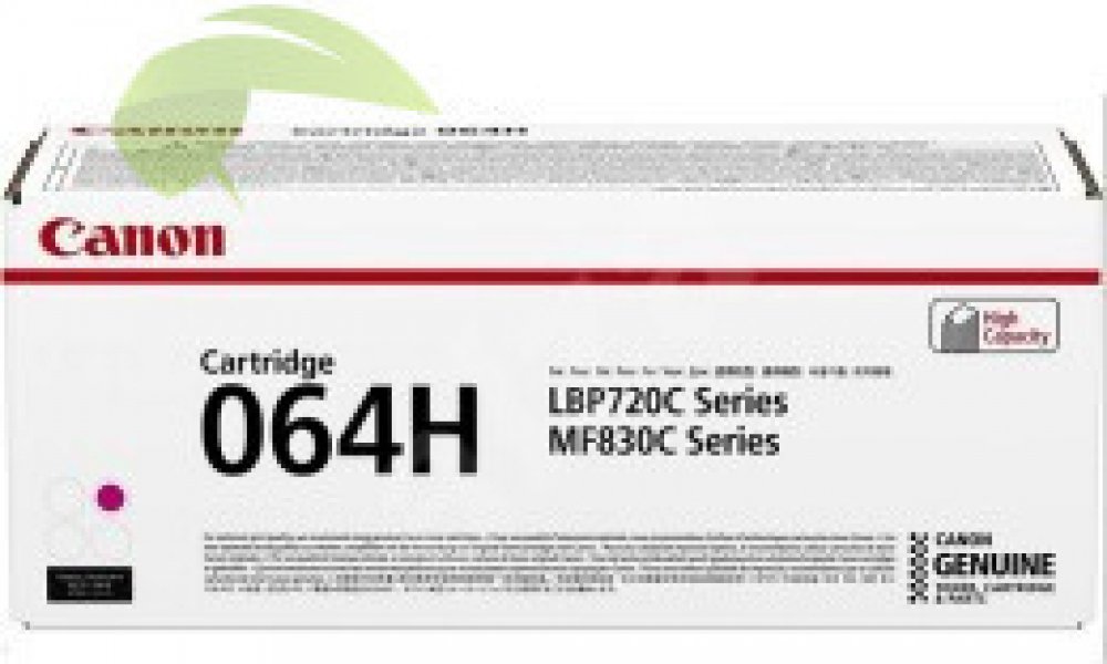 Canon LASER TONER CRG 064HMToner Canon do tiskárny Canon i-Sensys MF je skvělou volbou jako vytvořenou přímo pro dennodenní firemní tisk faktur, textů a jiných písemností. Toner poskytuje solidní výsledek s vysokou trvanlivostí. Výtěžnost činí plných 10400 potištěných stran. Ve vybrané náplni je obsažena purpurová barva. Rozumný tisk s tonerem pro tiskárny Canon CRG-064H purpurová, který byl vyroben tiskárnám Canon přímo na míru. Zaručena je úplná kompatibilita a maximální spolehlivost, kterou pochválí jak občasný, tak také uživatel s maximálními požadavky.