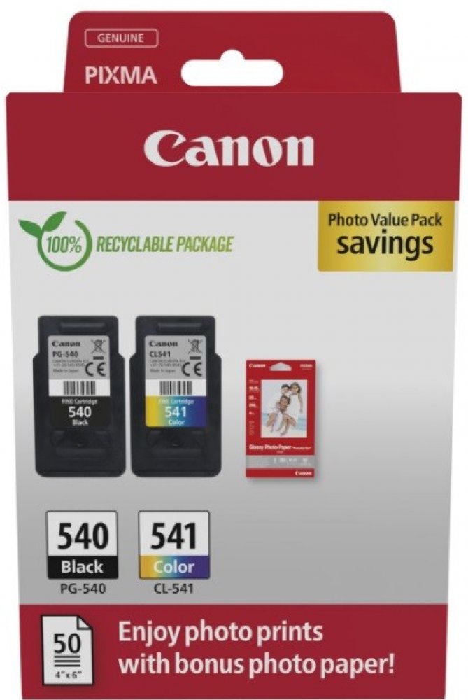Originální inkoust Canon PG-540/CL-541 (5225B013), černý/barevný, 8 + 8 ml, 2-pack + GP-501 50 listů Barva náplně: černá/barevná.