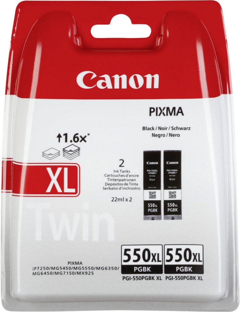 Canon originální ink PGI550 XL BK, 6431B001, black, 22ml, high capacity. Canon originální ink PGI-550 BK XL Kvalitní inkoust pro dokonalý tisk Vytvářejte působivé dokumenty s dlouhou životností a tiskněte fotografie na své tiskárně Canon pomocí originálního inkoustu Canon PGI-550 BK XL, který bude zcela kompatibilní s vaší tiskárnou. Nejlepší kvalita Nádherná kvalita tisku s dlouhou životností a výjimečnými detaily a barevným a černým textem. Spolehlivější tisk Originální ink 6431B001 od společnosti Canon zajistí, že vaše tiskárna Canon bude vždy spolehlivá. Bezproblémová konzistence Konzistentní kvalita a bezproblémový výkon tiskárny Canon s měkkými barvami a detailní černou. Některé věci lépe fungují spolu. Kombinací tiskárny a originálních inkoustových kazet Canon spolu s fotografickým papírem zajistíte optimální výkon a dokonalou kvalitu při každém tisku.