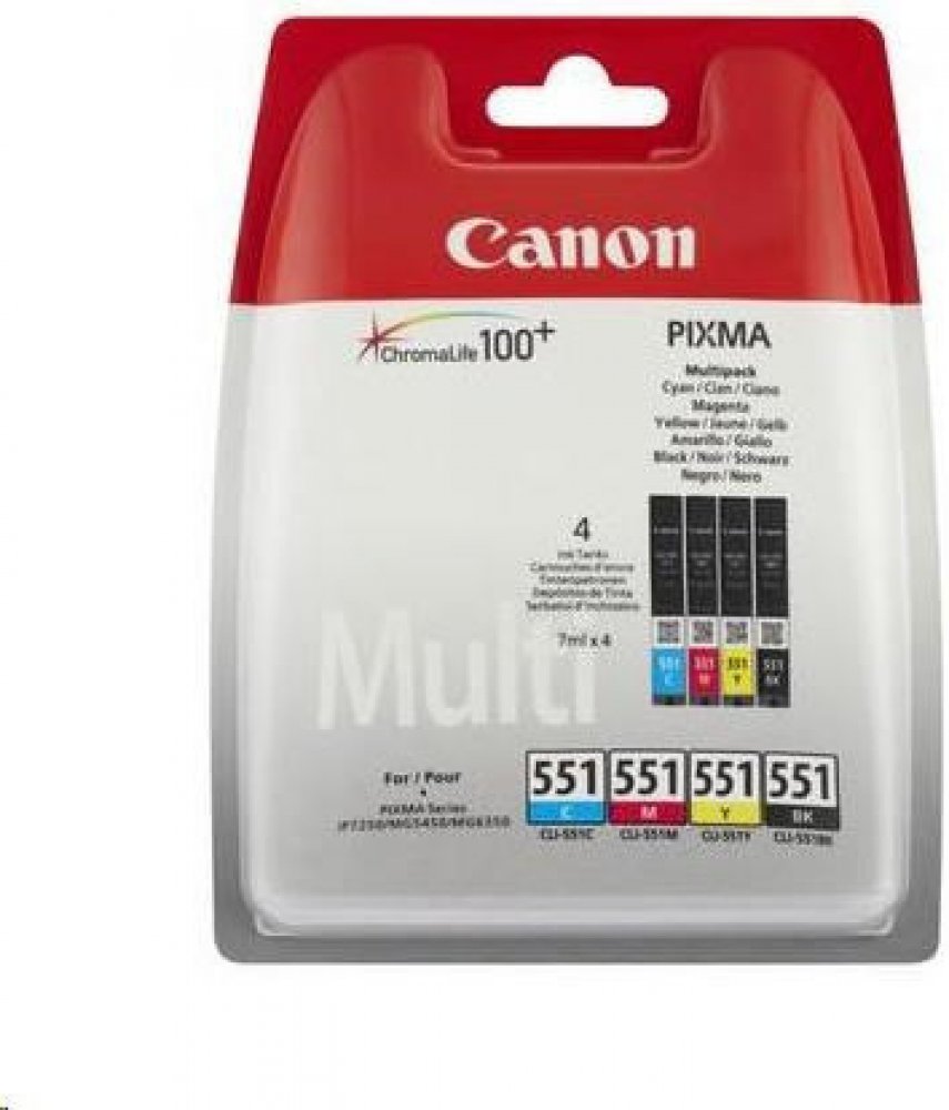 Canon CLI-551 Ink cartridge MULTI pack SEC, černá (black) + barevná (colour), výtěžnost 300 str.