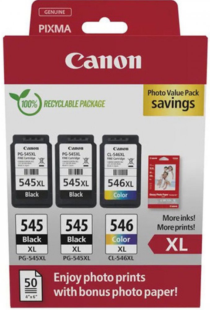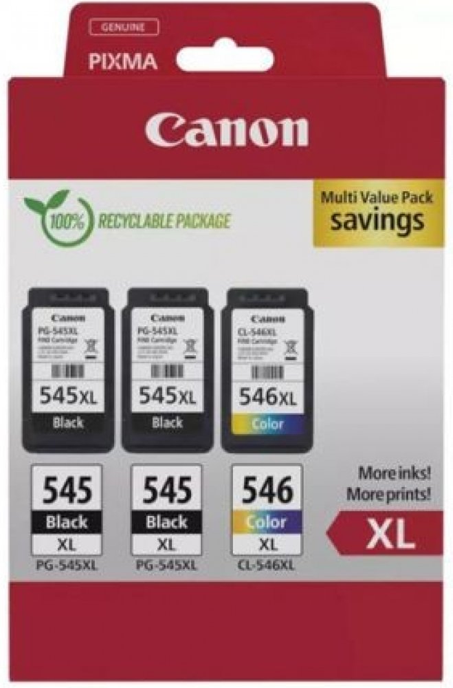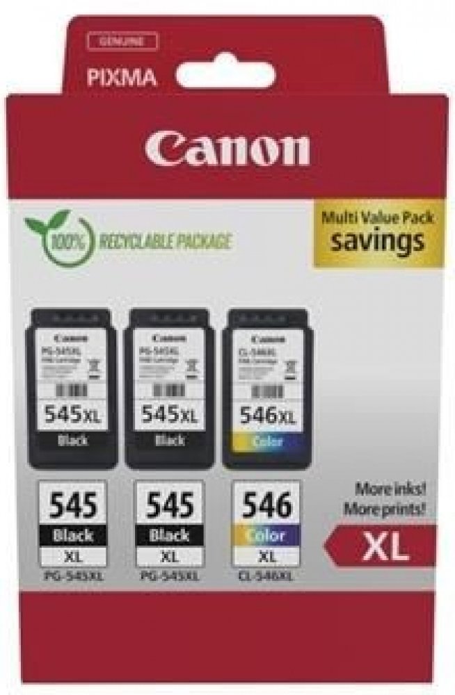 Originální inkoustová kazeta (cartridge) Canon 2 x PG-545XL + CL-546XL, 8286B013 v barvě multipack. Jeho kapacita je 2 x 450 + 300 stran. Cartridge od výrobce Canon splňuje mezinárodní standardy, díky čemuž je garantována vysoká kvalita tisku.