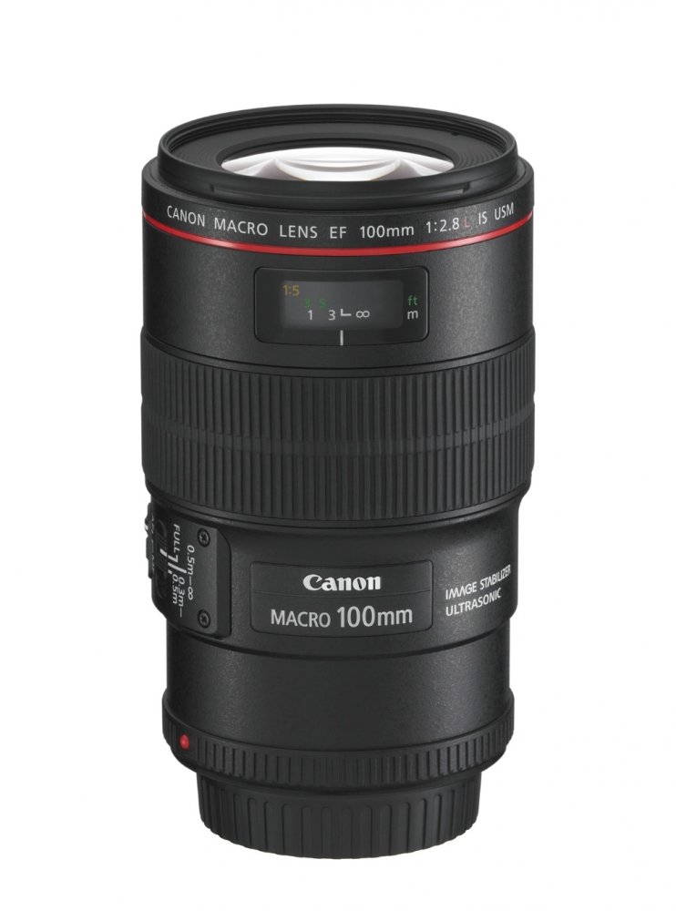 Objektiv Canon EF 100 mm f/2,8L IS USM z prestižní řady L společnosti Canon a první objektiv, který je vybaven stabilizátorem obrazu s detekcí úhlu a posunu, jež je vysoce účinná při zaostřování na krátké vzdálenosti.