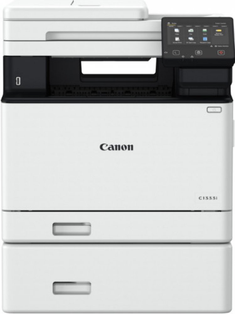 Laserová tiskárna barevná, tisk, kopírování, skenování, rychlost tisku až 33 stránek A4 za minutu jednostranně, tisk 60 stránek za minutu na formát A5, oboustranně až 29,5 obr./min (A4), rozlišení 1200 x 1200 dpi, doba tisku prvního dokumentu 7,1 s., rychlost kopírování až 29 str./min, rozlišení 600 x 600, rychlost skenování oboustranně (černobíle/barevně, 300 × 300 dpi, Jednostranně (černobíle/barevně, 300 × 600 dpi): 40/20 obr./min., oboustranně (černobíle/barevně, 300 × 600 dpi): 80/40 obr./min. 100/80 obr./min., rozlišení 600 x 600, zásobník na 250 listů, víceúčelový zásobník s kapacitou 50 listů, 150 listů na výstupu, rozhraní vysokorychlostní připojení USB 2.0, Podpora služby Google Cloud Print, AirPrint a Canon PRINT Business, oboustranný tisk.