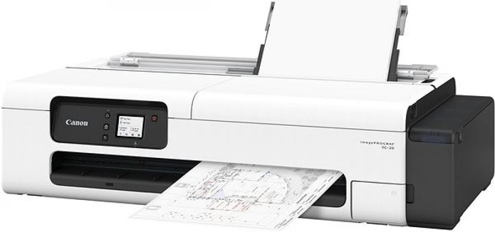 imagePROGRAF TC-20 je kompaktní, praktické zařízení pro podniky, které vyžadují velkoformátový tisk, ale mají omezený rozpočet nebo prostor. Se zařízením imagePROGRAF TC-20 mohou zákazníci produkovat profesionální výtisky s použitím rolového média až do formátu A1 nebo samostatných listů o velikosti A3 nebo A4, ať už pracují kdekoli: z kanceláře, z domova nebo na staveništi. Zařízení bylo navrženo pro snadné použití a zároveň poskytuje udržitelnější alternativu než konkurence.