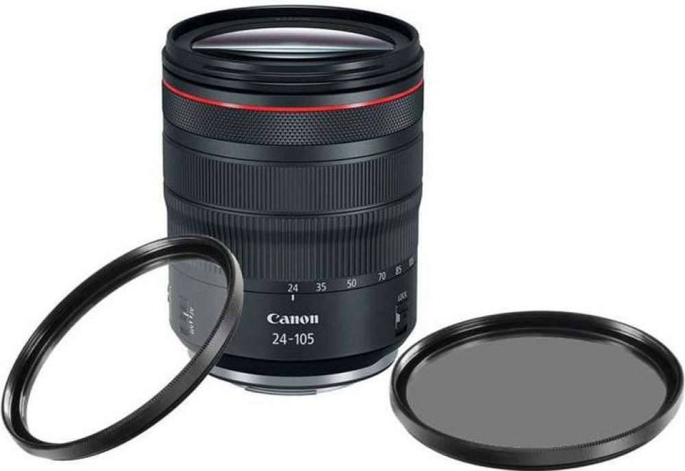 Objektiv se zoomem 24–105 mm pokrývá ohniskovou vzdálenost širokoúhlého objektivu, standardního objektivu a teleobjektivu. Stabilizátor obrazu s rozsahem 5 EV zaručuje ostrost snímků i za slabého osvětlení, zatímco zaostřování s motorkem Nano USM ocení všichni fotografové a filmaři.
