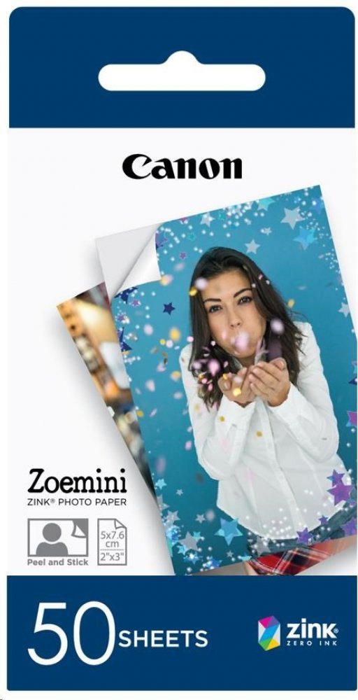 Fotopapír formátu 50 x 76 mm pro přenosnou tiskárnu Zoemini udělá z vašich fotografií ceněné dekorace a dárky. ZINK technologie reaguje na zahřání a zcela bez inkoustu tak produkuje fotografie, které jsou odolné vůči rozmazání, roztržení i vodě. Zadní stranu fotografie lze navíc sundat a díky samolepící vrstvě nalepit na nábytek, notebook či do rodinného alba. V balení se nachází 50 listů.