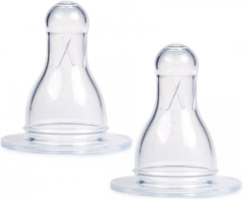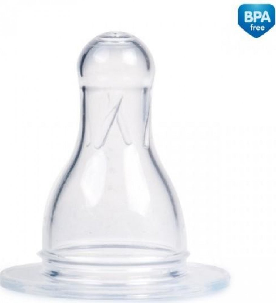 Silikonový kulatý dudlík je vhodný na všechny typy standardních láhví. Dokonale se odvzdušňuje a „nelepí“ se k sobě v průběhu krmení. Je vyroben z kvalitního silikonu, který se zcela bez chuti a bez zápachu a nemění chuť podávaného pokrmu. Dodává se v šesti velikostech průtoku. Při výběru dudlíku berte v úvahu také věk dítěte, jeho chuť k jídlu a druh podávaného pokrmu. V balení 2 kusy.Návod k použití:Před prvním použitím dudlík z hygienických důvodů sterilizujte ve vařící vodě po dobu asi 5 minut. Před každým dalším použitím umyjte dudlík šetrným mycím prostředkem v horké vodě, důkladně vypláchněte a přelijte vařící vodou. Nepoužívejte žádné antibakteriální přípravky! Nenechávejte dudlík na přímém slunci, v blízkosti tepelného zdroje nebo ve sterilizačních prostředcích déle než je doporučováno, můžete způsobit oslabení dudlíku. Šroubovací víčko nedotahujte příliš silně, protože pak se dudlík nemůže správně odvzdušňovat. Tvrdá voda, ovocné šťávy nebo čaje mohou způsobit usazeniny nebo zabarvení dudlíku, což nijak nemění jeho vlastnosti. Neděrujte a nezvětšujte otvory v dudlíku – můžete způsobit jeho zničení. Z hygienických a bezpečnostních důvodů doporučujeme vyměnit dudlík max. po 2 měsících. Důležité! Pro bezpečnost a zdraví vašeho dítěte! Před každým použitím zkontrolujte kvalitu dudlíku. Věnujte dudlíku zvýšenou pozornost poté, co dítěti vyrostou první zoubky. Vyzkoušejte kvalitu dudlíku důkladným natažením všemi směry. Při prvních známkách poškození dudlík ihned vyhoďte a již dále nepoužívejte. Používejte pouze pod dohledem dospělé osoby. Nikdy nepoužívejte dudlík jako šidítko. Dlouhodobé i prodloužené sání tekutin může způsobit vady zubní skloviny dítěte. Vždy zkontrolujte teplotu podávaného pokrmu. Upozornění! Výrobek není hračka. Uchovávejte mimo dosah dítěte. Dudlík odpovídá požadavkům:Nařízení Evropského parlamentu a rady 1935/2004/EC – obecné požadavky na materiály a předměty určené pro styk s potravinami,EN 14350 - 1 Výrobky pro péči o dítě - Vybavení pro pití - Část 1: Všeobecné a mechanické požadavky a zkoušky,EN 14350 – 2 Výrobky pro péči o dítě - Vybavení pro pití - Část 2: Chemické požadavky a zkoušky.