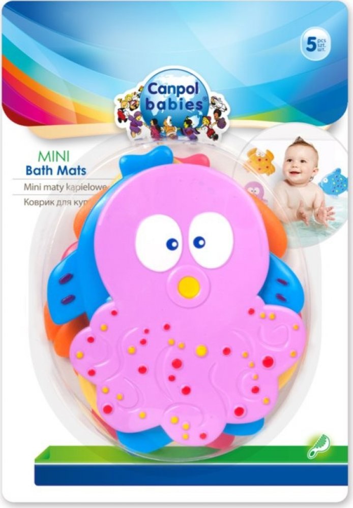 Canpol babies Bath Mini, 5 ks, Koupelové potřeby pro děti, Předejděte při každodenním koupání zbytečným nehodám. Protiskluzová podložka do vany Canpol babies Bath Mini pomáhá zajistit bezpečí těch nejmenších a spolehlivě brání nešťastnému uklouznutí a pádu v mokré sprše či vaně. Vlastnosti: pomáhá chránit před uklouznutím nebo pádem během koupání přísavky účinně brání pohybu podložky hravý dětský ...