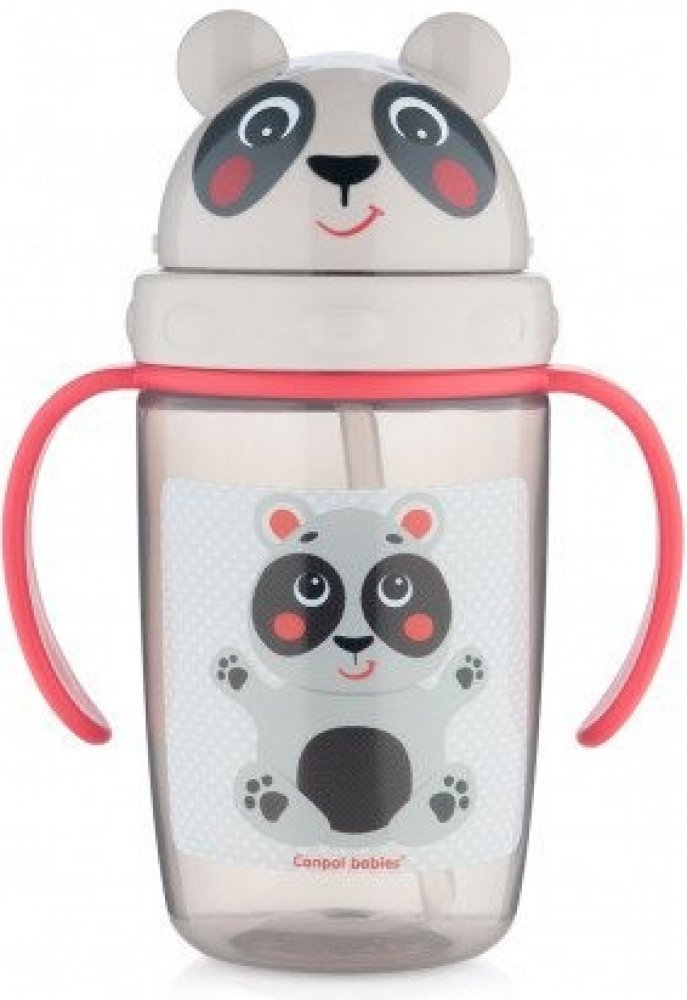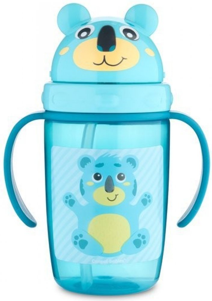 Praktická barevná láhev se silikonovou slámkou a potiskem v designu medvídka, s víčkem ve tvaru hlavičky s oušky. Pro děti starší 9-ti měsíců, které již umí samy pít. Ideální na cestování nebo procházky. Praktické rukojeti padnou do dětských ruček. Transparentní pro lepší kontrolu vypitého množství. Silikonová slámka je spojena s plastovou slámkou, která vede na dno láhve a usnadňuje vypití nápoj...
