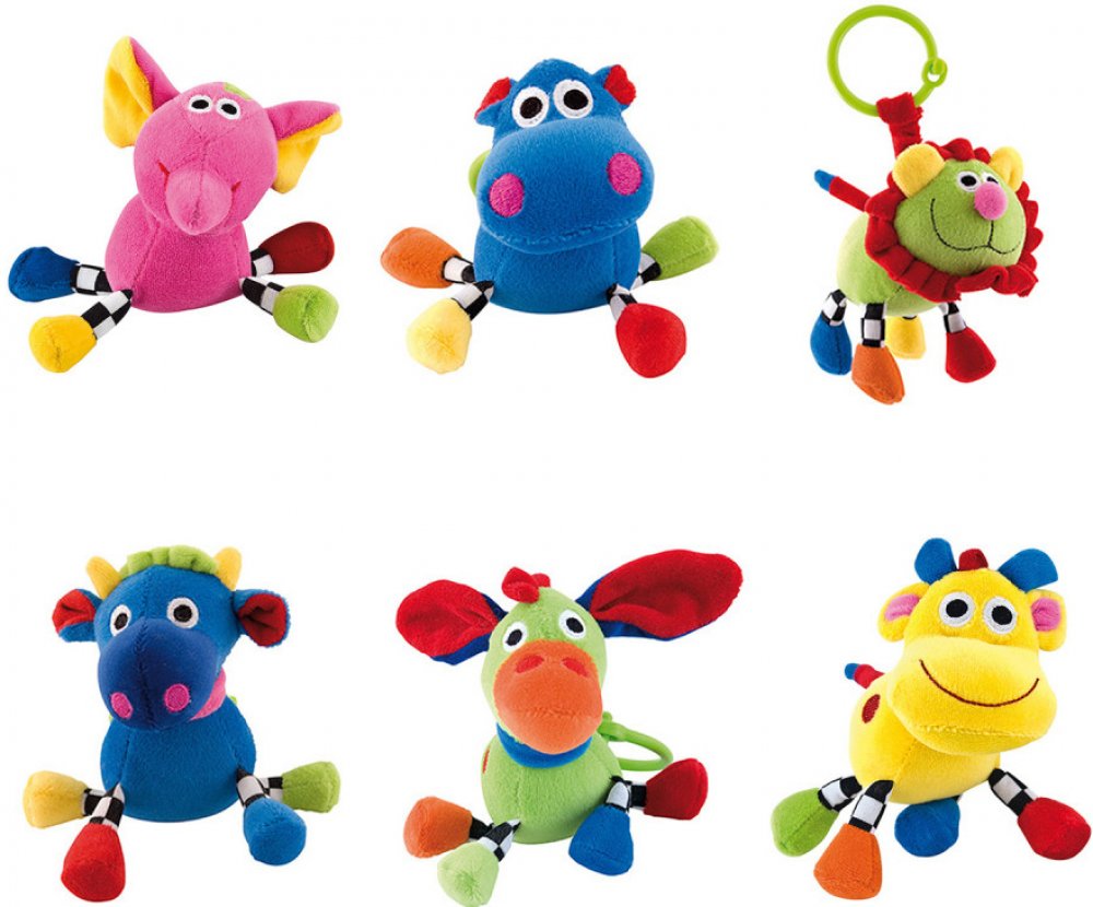 Kolekce plyšových hraček s úchytem na zavěšení do kočárku/postýlky stimuluje rozvoj smyslů dítěte. Intenzivní barvy přitahují pozornost dítěte. Hračka je lehká a vydává příjemné zvuky.Návod k použití: Udržujte v čistotě. Návod k údržbě je uveden na všivce. Upozornění! Důležité pro zdraví a bezpečnost vašeho dítěte!Před každým použitím výrobek důkladně zkontrolujte. Při prvních známkách poškození nebo opotřebení výrobek ihned vyhoďte a již dále nepoužívejte. Obal otevírejte energickým roztržením folie bez použití nůžek. Upozornění! Plastový obal (balení) uchovávejte mimo dosah dítěte, předejdete tak možnosti zadušení dítěte obalem.Plyšová hračka odpovídá požadavkům: Směrnice Evropského parlamentu a Rady 2009/48/ES o bezpečnosti hraček,EN 71 - 1 Bezpečnost hraček - Část 1: Mechanické a fyzikální vlastnosti,EN 71 - 2 Bezpečnost hraček - Část 2: Hořlavost,EN 71 - 3 Bezpečnost hraček - Část 3: Migrace určitých prvků.
