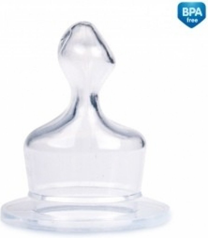 Silikonový anatomický dudlík je vhodný na všechny typy standardních láhví. Dokonale se odvzdušňuje a „nelepí“ se k sobě v průběhu krmení. Je vyroben z kvalitního silikonu, který se zcela bez chuti a bez zápachu a nemění chuť podávaného pokrmu. Dodává se v pěti velikostech průtoku. Při výběru dudlíku berte v úvahu také věk dítěte, jeho chuť k jídlu a druh podávaného pokrmu. V balení 2 kusy.Návod k použití:Před prvním použitím dudlík z hygienických důvodů sterilizujte ve vařící vodě po dobu asi 5 minut. Před každým dalším použitím umyjte dudlík šetrným mycím prostředkem v horké vodě, důkladně vypláchněte a přelijte vařící vodou. Nepoužívejte žádné antibakteriální přípravky! Nenechávejte dudlík na přímém slunci, v blízkosti tepelného zdroje nebo ve sterilizačních prostředcích déle než je doporučováno, můžete způsobit oslabení dudlíku. Šroubovací víčko nedotahujte příliš silně, protože pak se dudlík nemůže správně odvzdušňovat. Tvrdá voda, ovocné šťávy nebo čaje mohou způsobit usazeniny nebo zabarvení dudlíku, což nijak nemění jeho vlastnosti. Neděrujte a nezvětšujte otvory v dudlíku – můžete způsobit jeho zničení. Z hygienických a bezpečnostních důvodů doporučujeme vyměnit dudlík max. po 2 měsících. Důležité! Pro bezpečnost a zdraví vašeho dítěte! Před každým použitím zkontrolujte kvalitu dudlíku. Věnujte dudlíku zvýšenou pozornost poté, co dítěti vyrostou první zoubky. Vyzkoušejte kvalitu dudlíku důkladným natažením všemi směry. Při prvních známkách poškození dudlík ihned vyhoďte a již dále nepoužívejte. Používejte pouze pod dohledem dospělé osoby. Nikdy nepoužívejte dudlík jako šidítko. Dlouhodobé i prodloužené sání tekutin může způsobit vady zubní skloviny dítěte. Vždy zkontrolujte teplotu podávaného pokrmu. Upozornění! Výrobek není hračka. Uchovávejte mimo dosah dítěte. Dudlík odpovídá požadavkům:Nařízení Evropského parlamentu a rady 1935/2004/EC – obecné požadavky na materiály a předměty určené pro styk s potravinami,EN 14350 - 1 Výrobky pro péči o dítě - Vybavení pro pití - Část 1: Všeobecné a mechanické požadavky a zkoušky,EN 14350 – 2 Výrobky pro péči o dítě - Vybavení pro pití - Část 2: Chemické požadavky a zkoušky.