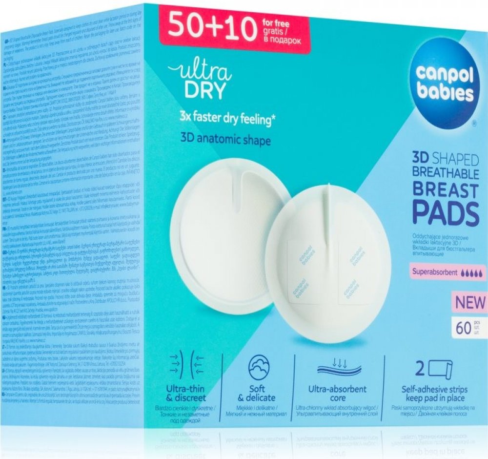 Canpol babies Ultra Dry Breathable Disposable Breast Pads Vložky do podprsenky 60ks jsou navrženy pro maximální pohodlí a ochranu. Díky prodyšnému materiálu umožňují pokožce dýchat, zatímco absorpční jádro zajišťuje spolehlivou ochranu proti úniku.
