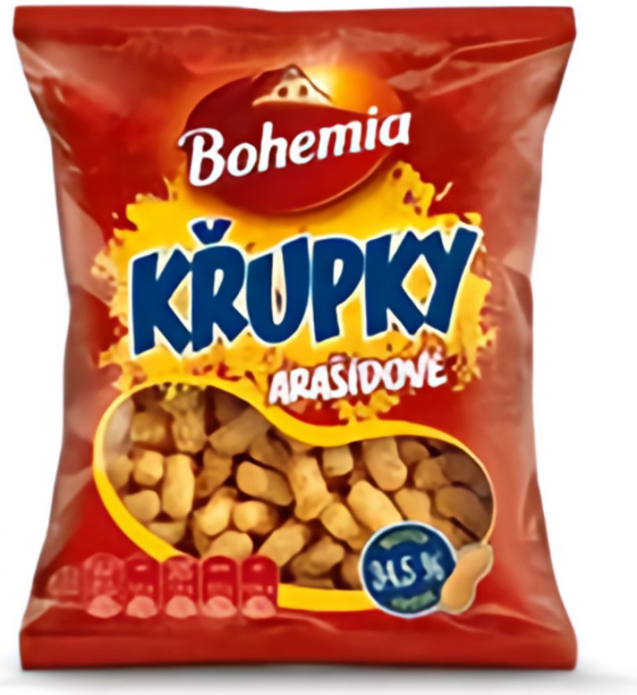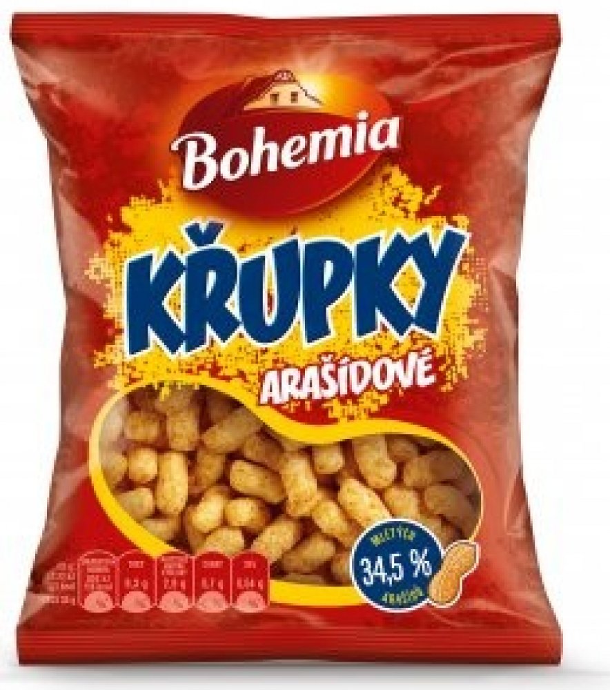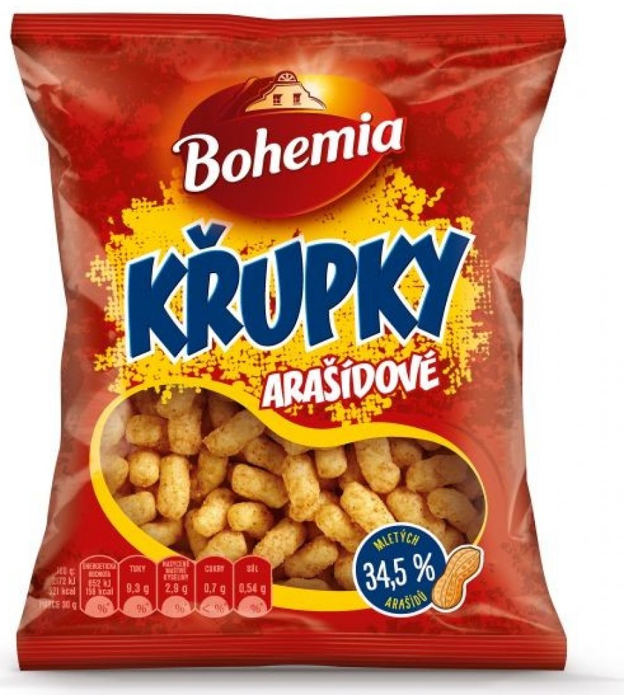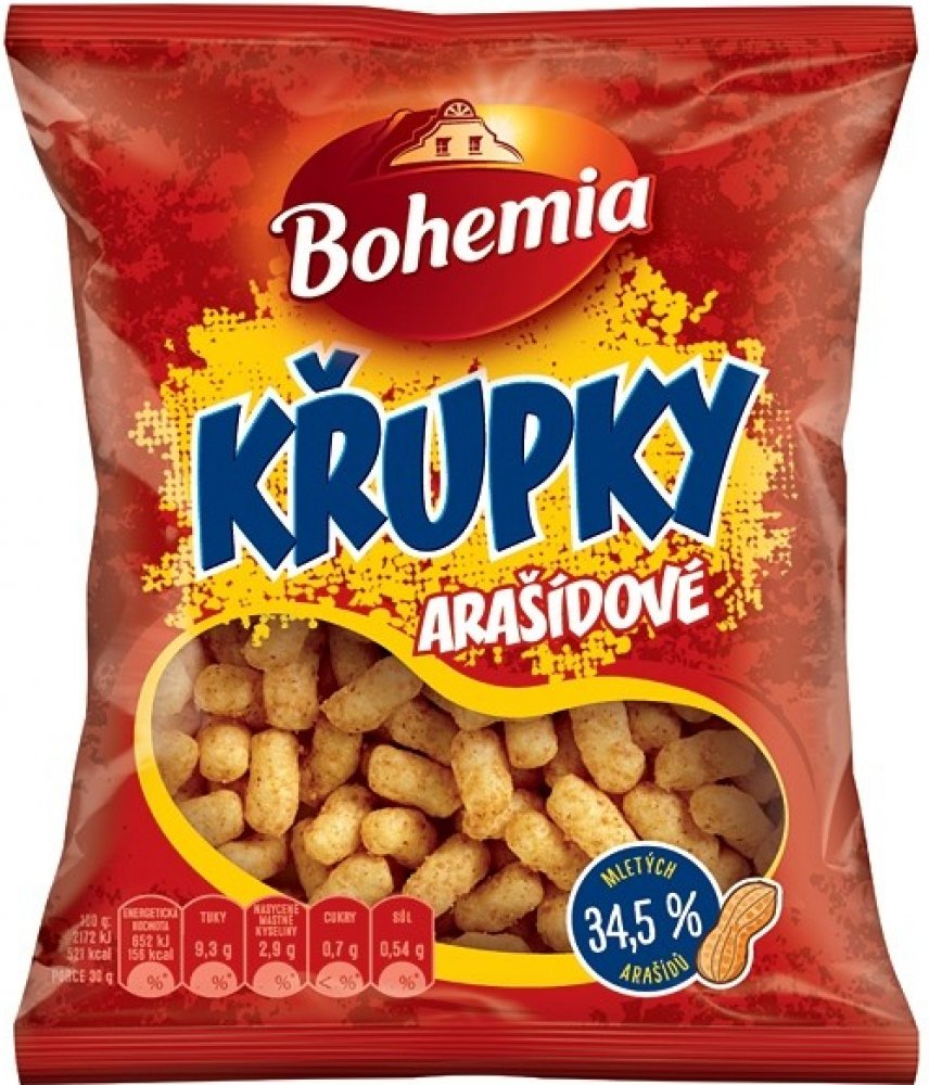 Složení : Kukuřičná krupice speciál 55%, pražené drcené ARAŠÍDY 33%, palmový tuk, částečne hydrogenovaný palmový tuk, jedlá sůl