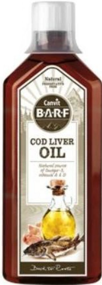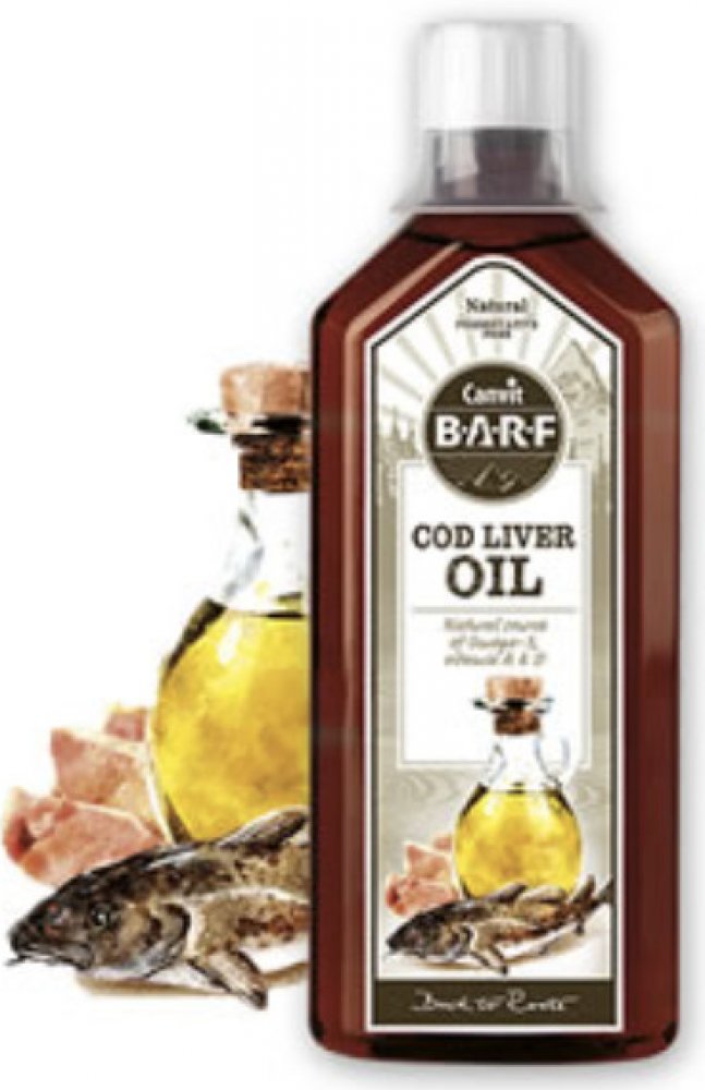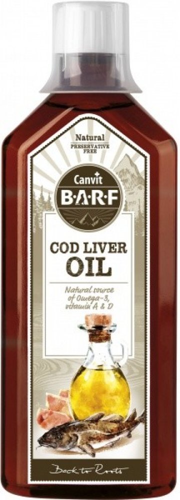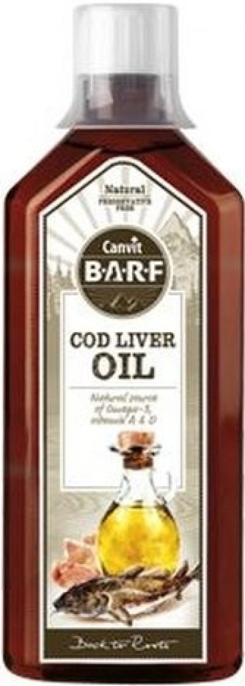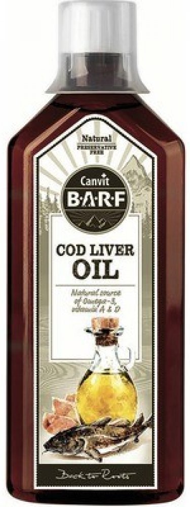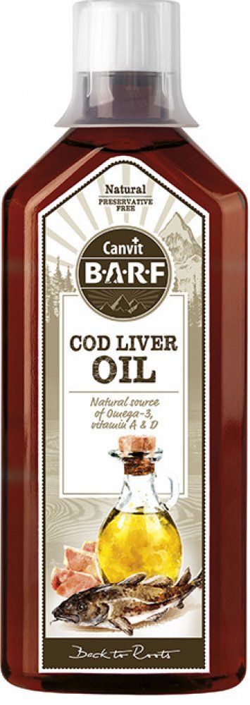 Canvit BARF Cod Liver Oil 0,5 l - 100% za studena lisovaný olej z tresčích jater s protizánětlivým účinkem pro psy a kočky. - 100% přírodní za studena lisovaný olej z tresčích jater s protizánětlivým účinkem pro psy a kočky. Bohatý zdroj omega-3 nenasycených mastných kyselin, vitamínu A a D.