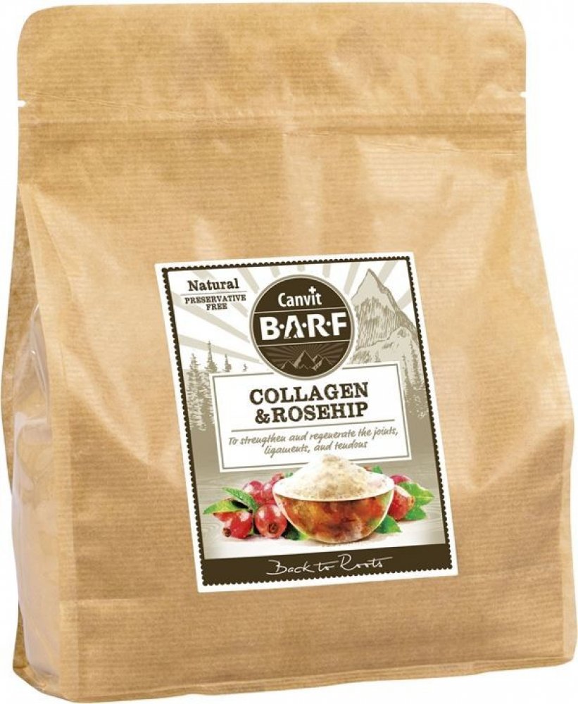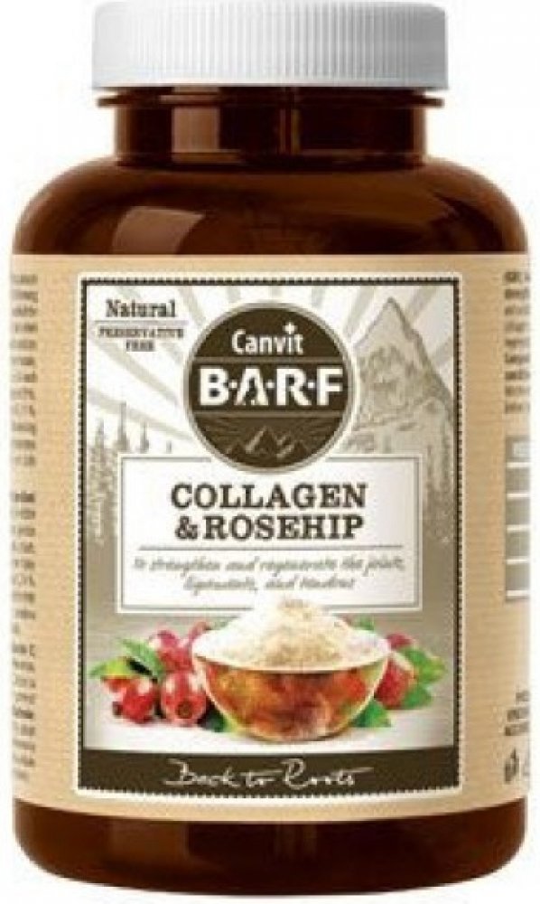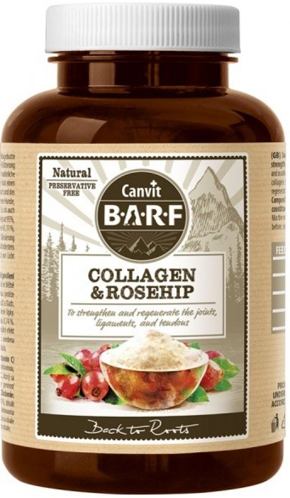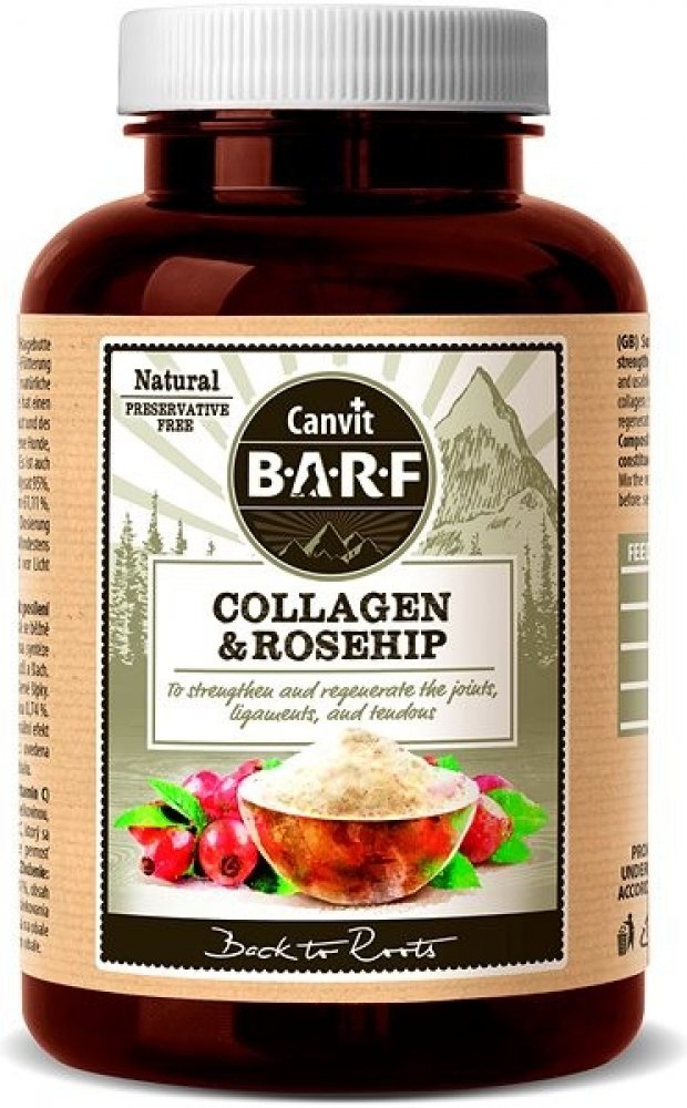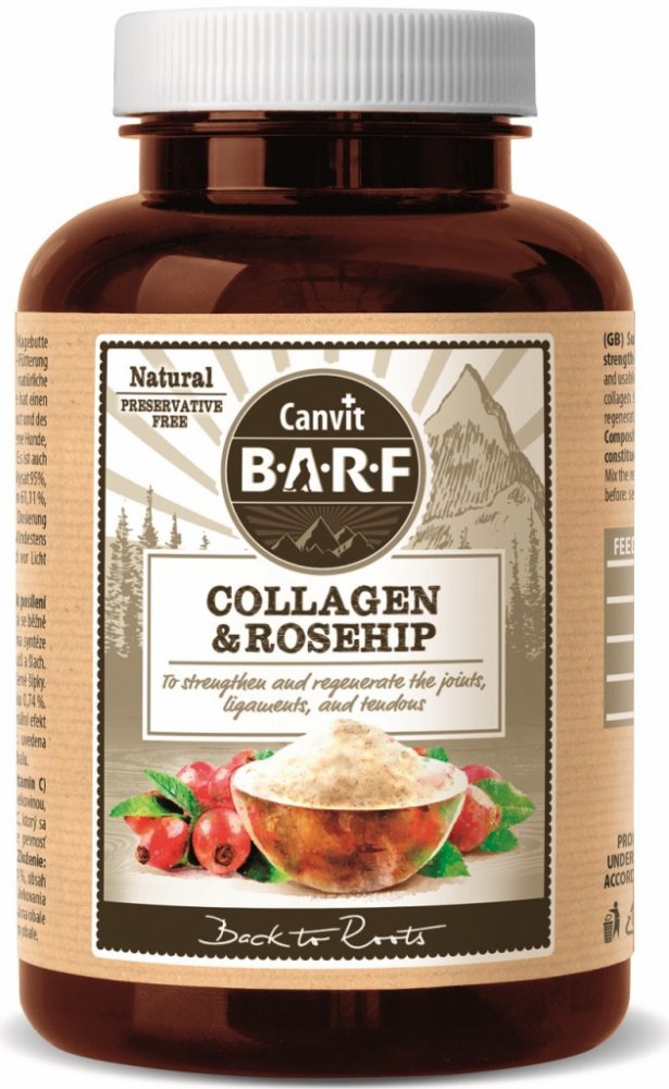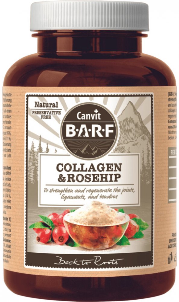 Hydrolyzovaný kolagen je vysoce stravitelnou a využitelnou bílkovinou, která se běžně vyskytuje ve vazivových tkáních a kostech. Šípek je bohatým zdrojem vitamínu C, který se podílí na syntéze kolagenu. Kombinace obou přírodních látek přináší správný efekt pro pevnost a regeneraci kloubů, vazů a šlach. Collagen & Rosehip je vhodný pro mladé a stárnoucí psy.