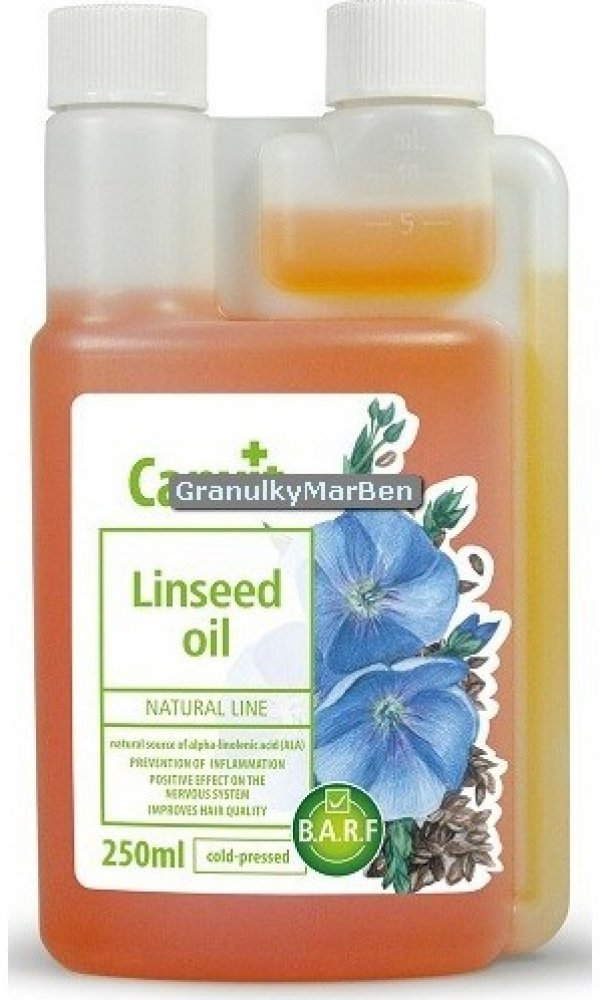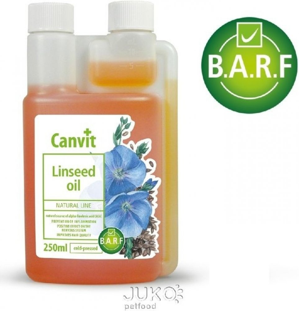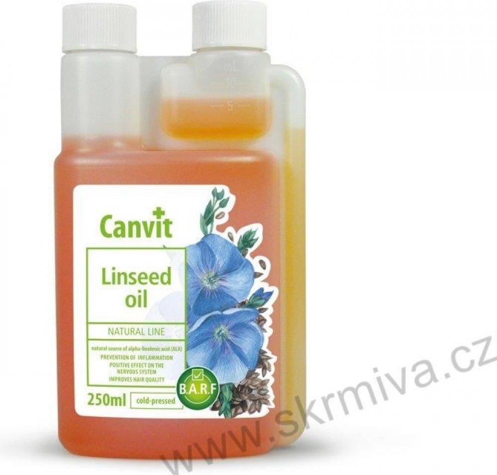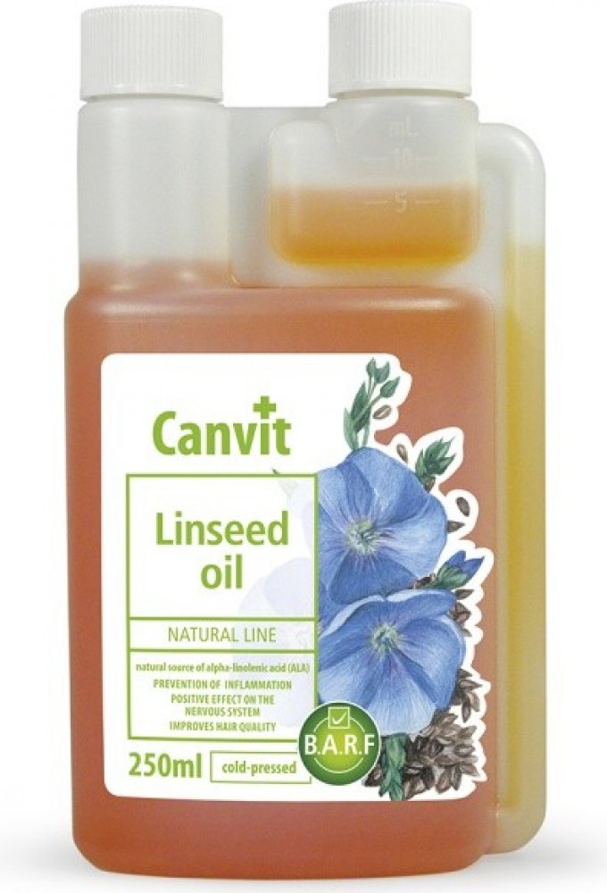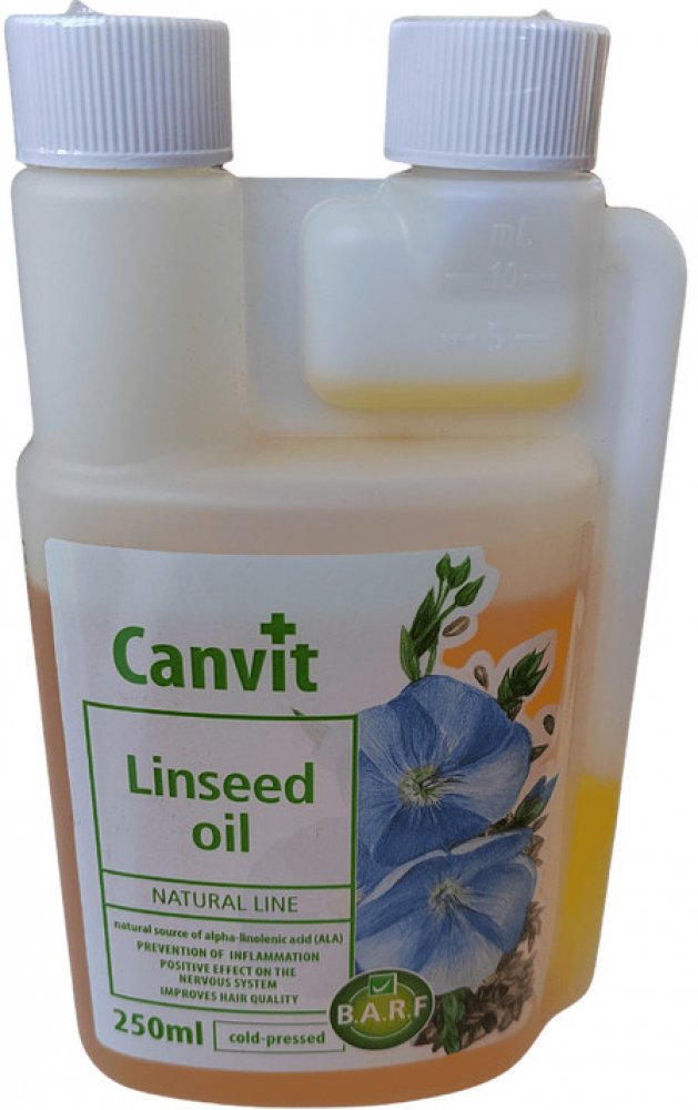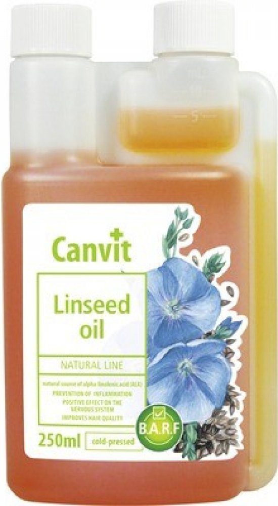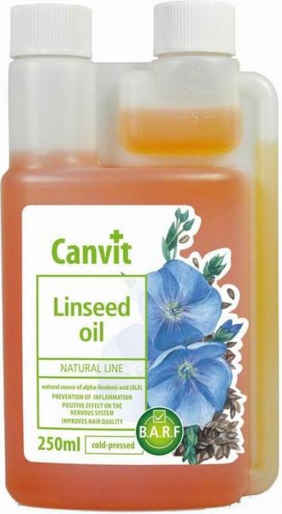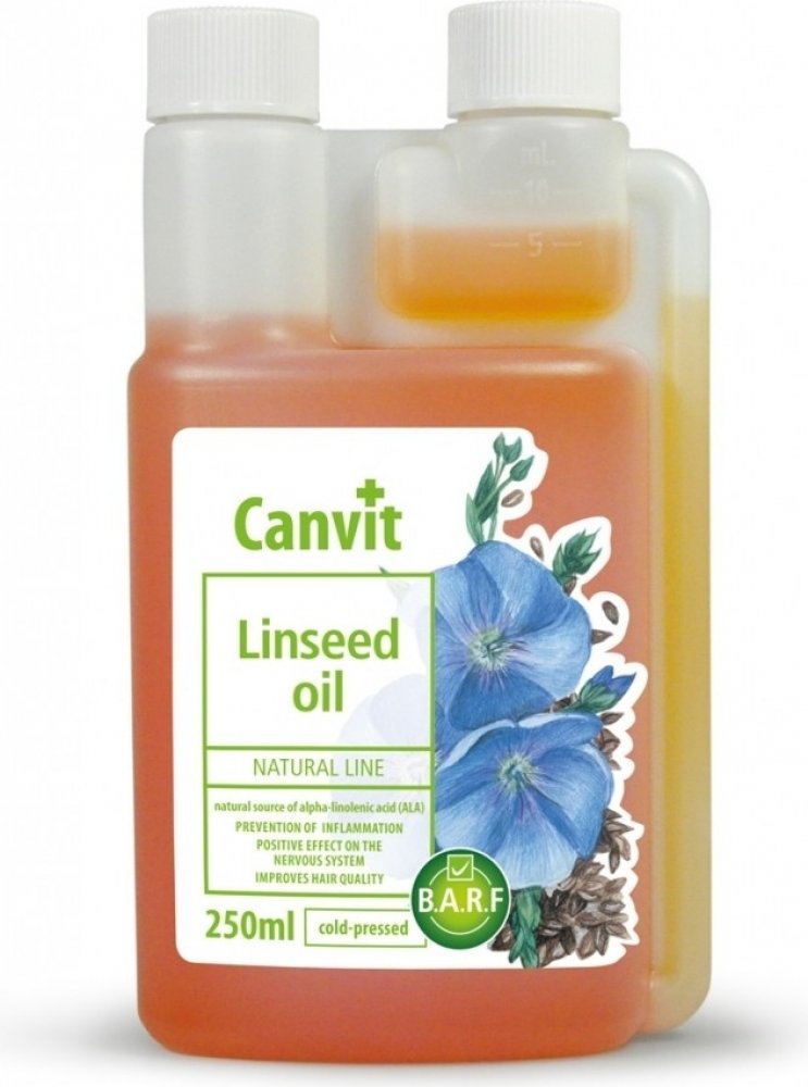 Lněný olej je skvělou alternativou k rybímu oleji u jedinců, kterým vadí rybí aroma či chuť. Lněný olej Canvit představuje z hlediska zajištění omega-3 mastných kyselin plnohodnotnou 100% alternativu k lososovému oleji. Stejně jako lososový olej působí i lněný olej proti línání, matné srsti a zachuchávání. Při každodenním užívání je srst zdravá a lesklá, kůže vláčná bez zarudnutí a svědivých příznaků. Lněný olej obsahuje 55 % až 70 % omega-3 mastné kyseliny ALA (kyseliny alfa-linolenové), což je přibližně 23,0 g omega-3 mastné kyseliny ve 100 g lněného oleje, a 24 % omega-6 mastné kyseliny LA (kyseliny linolové).