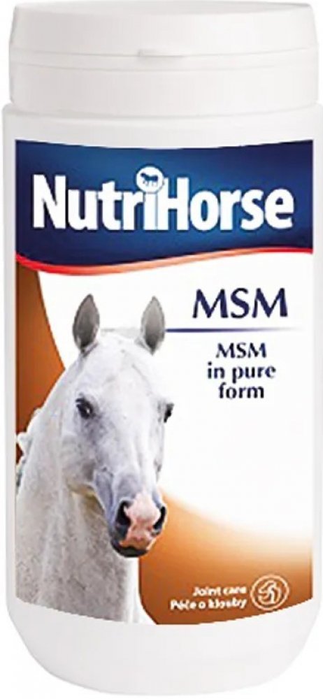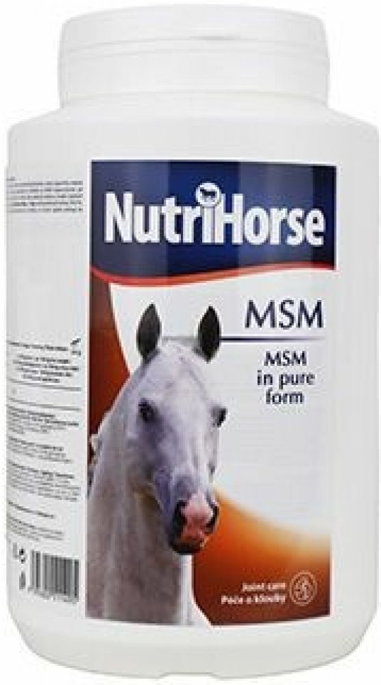 NutriHorse MSM (methylsulfonylmethan) je zdrojem organicky vázané síry, která působí na zpevnění vazů a šlach, regeneraci a relaxaci svalů. Krmná surovina pro koně je čistá surovina methylsulfonylmethan, zdroj organicky vázané síry, která je součástí pojivových tkání. Díky svým protizánětlivým účinkům je MSM doporučován při onemocněních kloubů. Tlumí bolestivost a otoky kloubů. Pomáhá také udržovat dobrou kvalitu kožních derivátů DávkováníDoporučené denní dávkování na 100 kg váhy koně: 1,5 g SloženíSložení: MSM (methylsulfonylmethan). Analytické složky v 1 kg: methylsulfonylmethan 99,9 %.