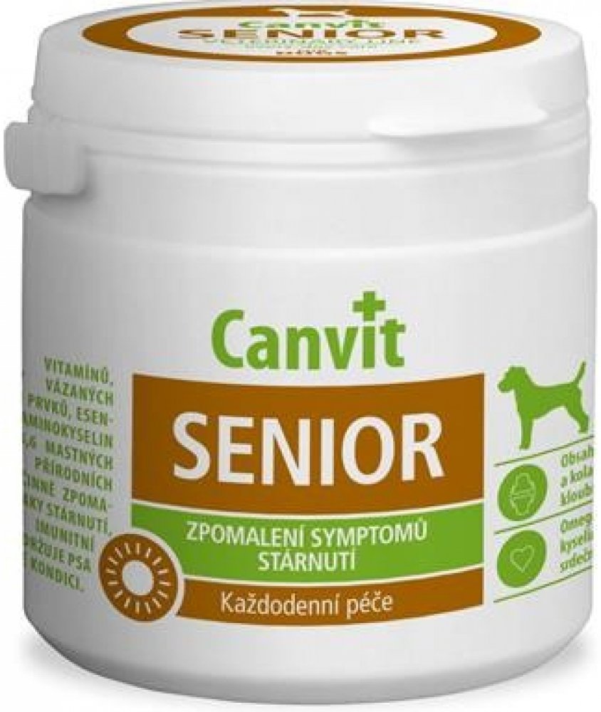 Stárnutí u psů je doprovázeno změnou metabolismu, která ovlivňuje kondici a aktivitu. U stárnoucích psů dochází ke ztrátě svalové hmoty, psi omezují svou aktivitu, přibývají na váze a zhoršuje se funkce imunitního a nervového systému. Canvit Senior je bohatým zdrojem aminokyselin pro udržení svalové hmoty a kondice, vitamínů a omega-3 a omega-6 nenasycených mastných kyselin pro zlepšení obranyscho...
