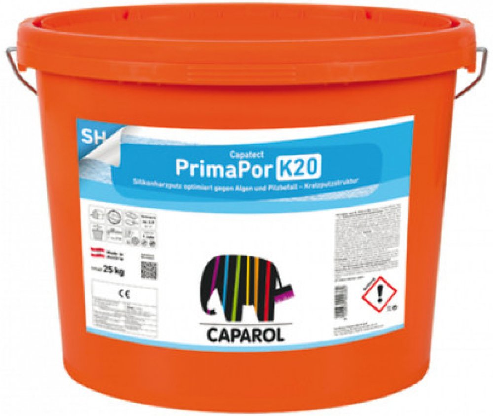 CAPAROL CT PrimaPor K15 25 kg W (zrnitá)Strukturní fasádní omítka na bázi silikonové pryskyřice.Použití: Jako vnější vrstvy na veškeré neošetřené omítky a beton i na pevně držící nekřídující minerální a disperzní podkladové plochy. Omítky jsou velmi vhodné jako krycí vrstva na kombinované tepelně izolační systémy Capatect a na systémy sanačních omítek.Strukturní omítky Capatect SH jsou vysoce difúzní a po vyschnutí hydrofobní. Proto mají velmi značnou odolnost vůči znečistění a jsou do maximální míry odolné proti průmyslovým odpadním plynům a primárnímu napadení mikroorganismy. Skladujte v chladném, ale nemrazivém prostředí. Na omítky na kombinované tepelně izolační systémy je nutno zvolit barevný odstín se součinitelem odrazivosti světla 25 a výše.Vlivem použití přírodních písků může dojít k odchylkám barevných odstínů. Proto na souvislé plochy zpracovávejte jen materiály se stejným výrobním číslem nebo vzájemně smíchejte materiály s různým výrobním číslem. Vlastnosti: Snadné zpracování Vysoká prodyšnost pro vodní páry Minimální pnutí Odolné vlivům povětrnosti Mechanicky odolné Barva bílá Spotřeba: 2,4 - 2,9 kg/m2 Technické parametry: Hustota 1.950 kg/m3 Koeficient difuzního odporu µH2O cca 40 Pevnost v tahu ≥ 0,3 MPa Reakce na oheň A2 Pojivová báze Emulze silikonových pryskyřic Koeficient tepelné vodivosti λ = 1,15 W/mK Propustnost vody (hodnota w) W3 - vysoká Propustnost vodních par (hodnota sd) V1 - vysoká