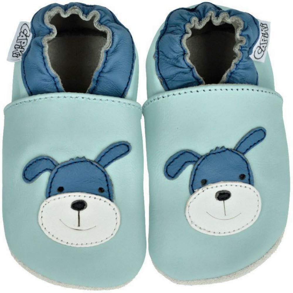 Kožené capáčky univerzální pro kluky i holčičky z kvalitní měkké kůže.Capáčky dětem snadno nazujete, udrží jejich nožky v teple a ponožky na nožičkách. Kožené capáčky univerzální pro kluky i holčičky z kvalitní měkké kůže.Pro děti 12-18 měsíců. Ceková délka: 14cm, tj velikost 21.Tyto měkké capáčky pro děti jsou velmi praktické. Využijete je kdykoliv, kdy cítíte, že by bylo vhodné dítěti ještě na ponožečky, či punčocháčky něco dát - na lození, či jako přezůvky na doma, na návštěvy, v kočárku, nákupním košíku, do autosedačky, obecně na cestování. Jsou lehké a super skladné - můžete je mít stále v kabelce či kočárku při sobě, když se rozhodnete třeba nečekaně zajít do babykavárny, ke kamarádce apod. Pomohou udržet nožičky v teple a ponožky, aby se nesundávaly.Podrážka z broušené hověziny je přirozeně antiskluzová. Drží dobře díky pružnému kotníku, při lezení se již nebudou sundávat ponožečky a zároveň se vždy přizpůsobí, jsou měkké a ohebné. Nožka se v nich tolik nepotí, jsou opravdu pohodlné a bez problému je snesou i děti, které klasické papučky stále sundávají, protože jim vadí. Díky tomu, že je podrážka vyrobena z broušené kůže, jsou přirozeně antiskluzové a velmi praktické - my jsme je s oblibou používali jako papučky doma, na návštěvách, u babičky, i do babykaváren a některých dětských kroužků...Vyrobeno z nezávadné kůže ve stejné fabrice, jako se vyrábí capáčky pro anglickou značku MiniFeet (jsou tedy stejně šité); představují bezkonkurenční poměr kvality a ceny. Testováno v české laboratoři a splňují všechny evropské normy pro děti do 3 let.JAK CAPÁČKY PRÁT, OŠETŘOVATJako všechny výrobky z kůže, nelze ani kožené capáčky prát (kůže by ztratila pružnost a mohly by se objevit nevzhledné prasklinky). Doporučujeme proto otírat navlhčeným hadříkem (podrážku i jemným kartáčkem), případně s malým přídavkem mýdla a nechat volně vyschnout (ne u zdrojů tepla). Nebo ještě lépe - použít prostředky na čištění kůže přímo určené, které pak využijete i pro další kožené botičky, které dětem koupíte. Na trhu například existují speciální čistící pěny (leather soap) Collonil a dalších značek. Pokud se vám podrážka zespodu špínou uhladí, stačí jen opět vyčistit a zdrsnit kartáčkem. Po kontaktu s vodou bývá kůže trochu tvrdší, stačí však jen vyschlé capáčky promnout mezi prsty a po chvíli nošení budou opět mekkoučké...