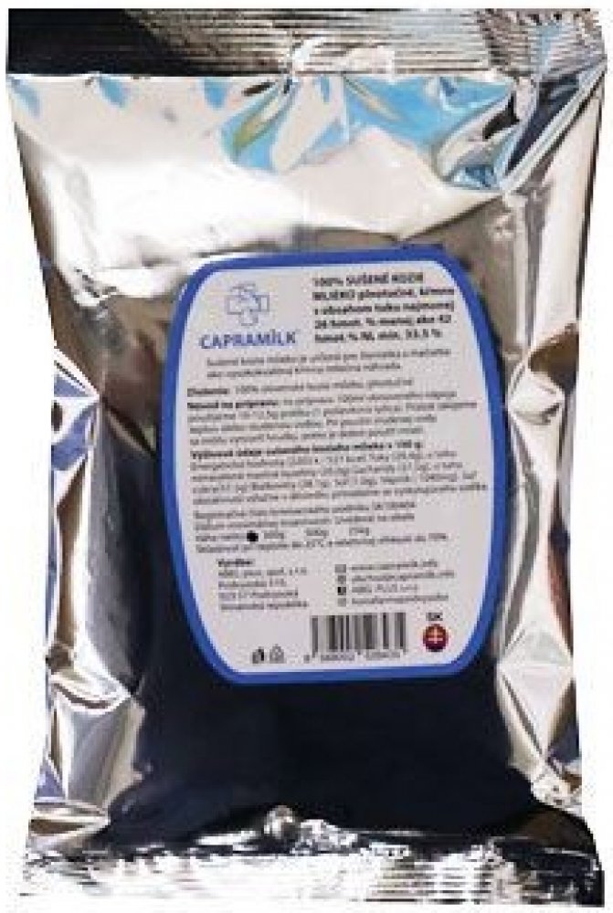 Sušené kozí mléko je určené pro štěňata a koťata jako vysoko kvalitní krmná mléčná náhrada. 100% sušené kozí mléko, krmné s obsahem tuku nejméně 26 hmot. % méně jak 42 hmot. % NL min. 33,5%