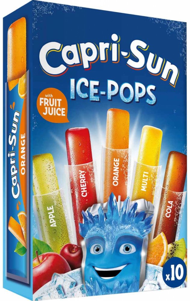 Klasika, nyní jako ledově vychlazený letní hit. Capri-Sun Ice Pops přináší oblíbenou příchuť ovocného nápoje v zmrazené formě přímo do vašeho mrazáku. Každé balení obsahuje deset jednotlivě porcovaných ledových lízátek, které poskytujírozmanitost a ovocné osvěžení. Příchutě jablka, třešně, pomeranče, multivitaminu a coly nabízejí barevný chuťový zážitek připomínající slunečné dny a bezstarostné dětství. Jednoduše zmrazte, roztrhněte a vychutnejte si – bez lžičky a nepořádku. Ať už jako sladkou svačinku mezi jídly nebo jako vrchol vaší příští zahradní párty, tyto ledové lízátka přinášejí do vašeho mrazáku celou škálu příchutí Capri-Sun. Ideální pro fanoušky kultovní značky, mladé i staré.Složení: Voda, cukr, ovocná šťáva z koncentrátu (pomeranč, citron, limetka, jablko, ananas, banán, kiwi, mučenka, višně), přírodní pomerančové aroma s dalšími přírodními aromaty, aroma, směs vitamínů (vitamin C, niacin, vitamín E, vitamín B6, vitamín B1, biotin), antioxidant (kyselina askorbová), barvicí koncentráty ze světlice barvířské, citronu, jablka, mrkve, bezu černého, černého rybízu, barvivo siřičitan amonný, cukrový likér, konzervant (benzoan sodný), okyselující látka (kyselina citronová), stabilizátor (guma tara).