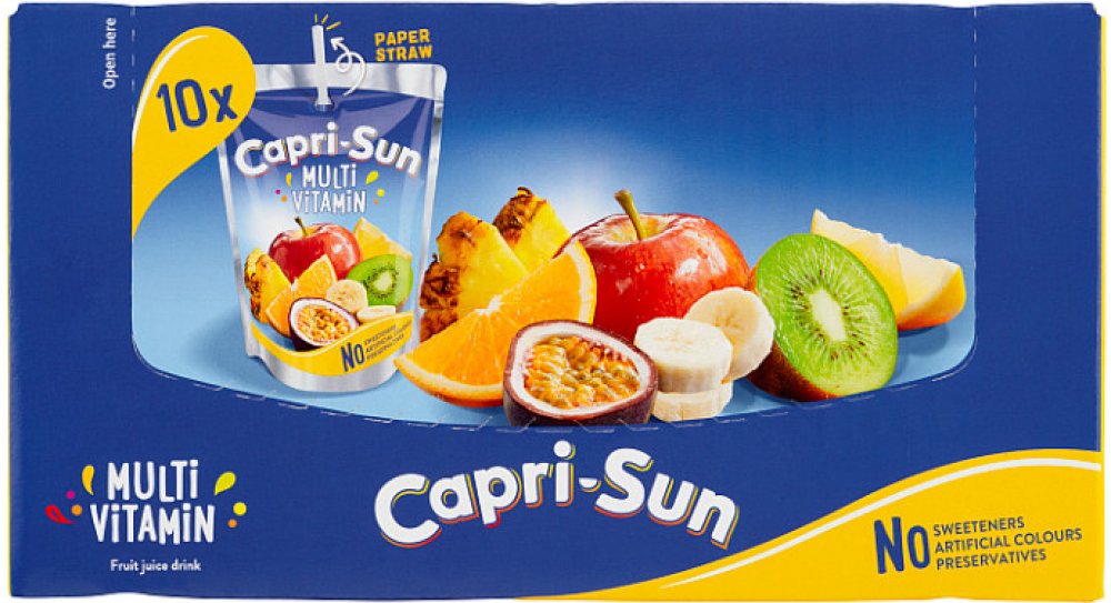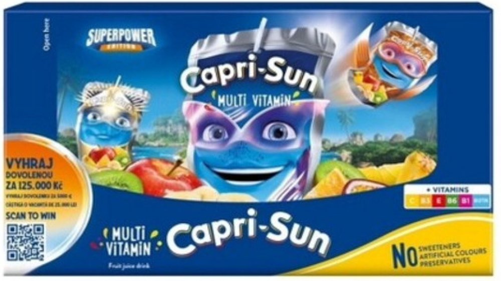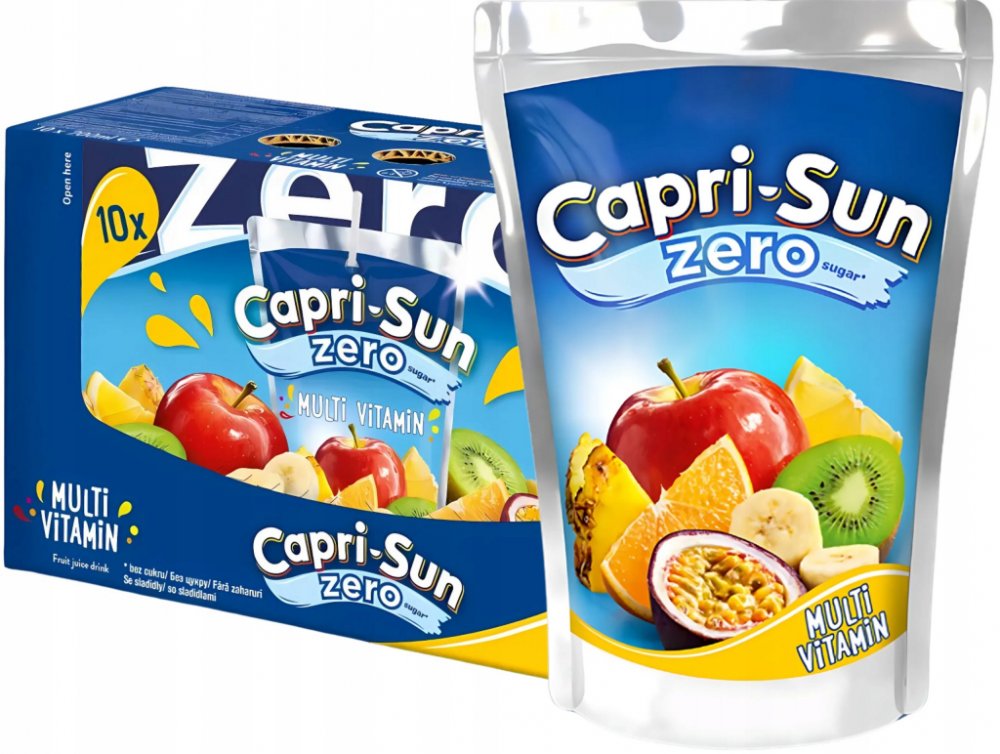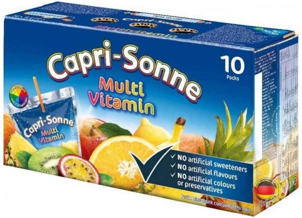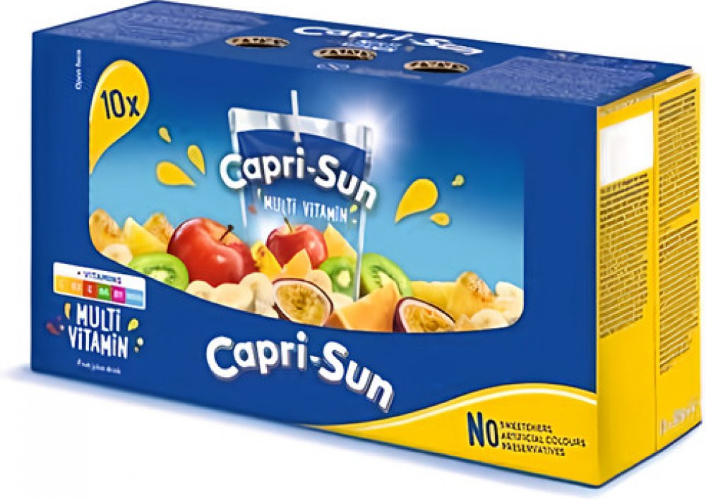 Capri Sun Multivitamin je víceovocný nápoj, který v sobě spojuje šťávu ze sedmi druhů ovoce s jemným nádechem citronu a limetky. Díky praktickému balení s brčkem je ideální pro děti i dospělé na cesty, do školy i do práce.