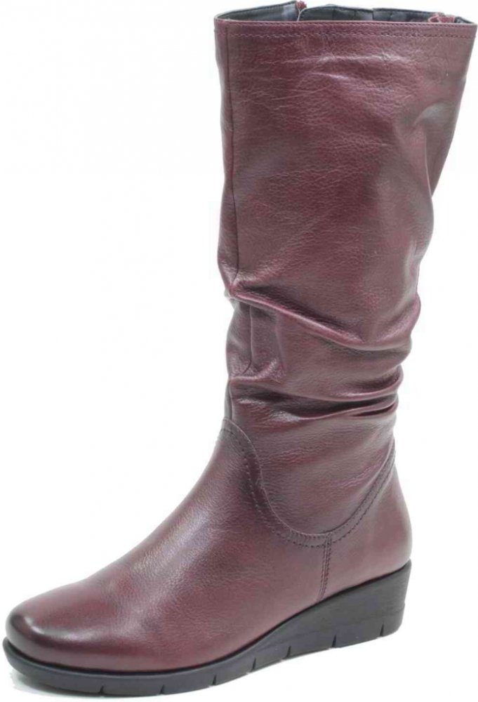 Dámské kozačky Caprice mají kožený svršek v odstínu bordó, výborně ladí s podzimem i zimou. Designově zajímavé je také nakrčení materiálu, které působí ležérním dojmem. Kozačky se zapínají pomocí dlouhého praktického zipu a středně vysoký klínový podpatek je dostatečně stabilní. Pro chodidla je zde použita stélka on Air Insole se vzduchovými polštářky. Uvnitř mají podšívku s nízkým, hřejivým vla...