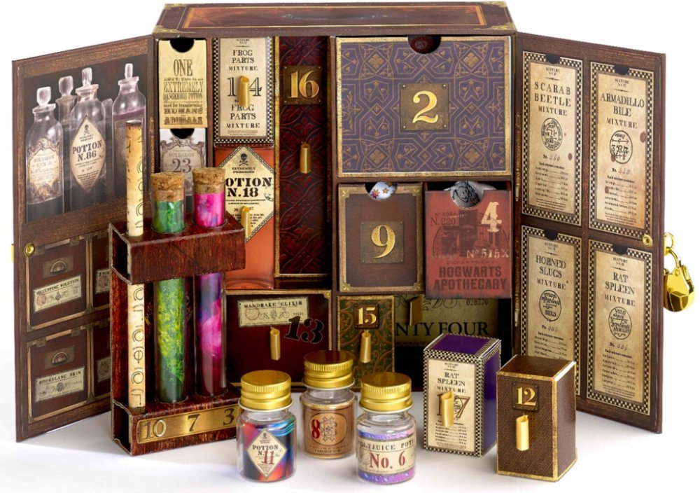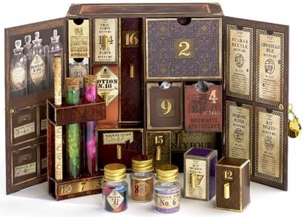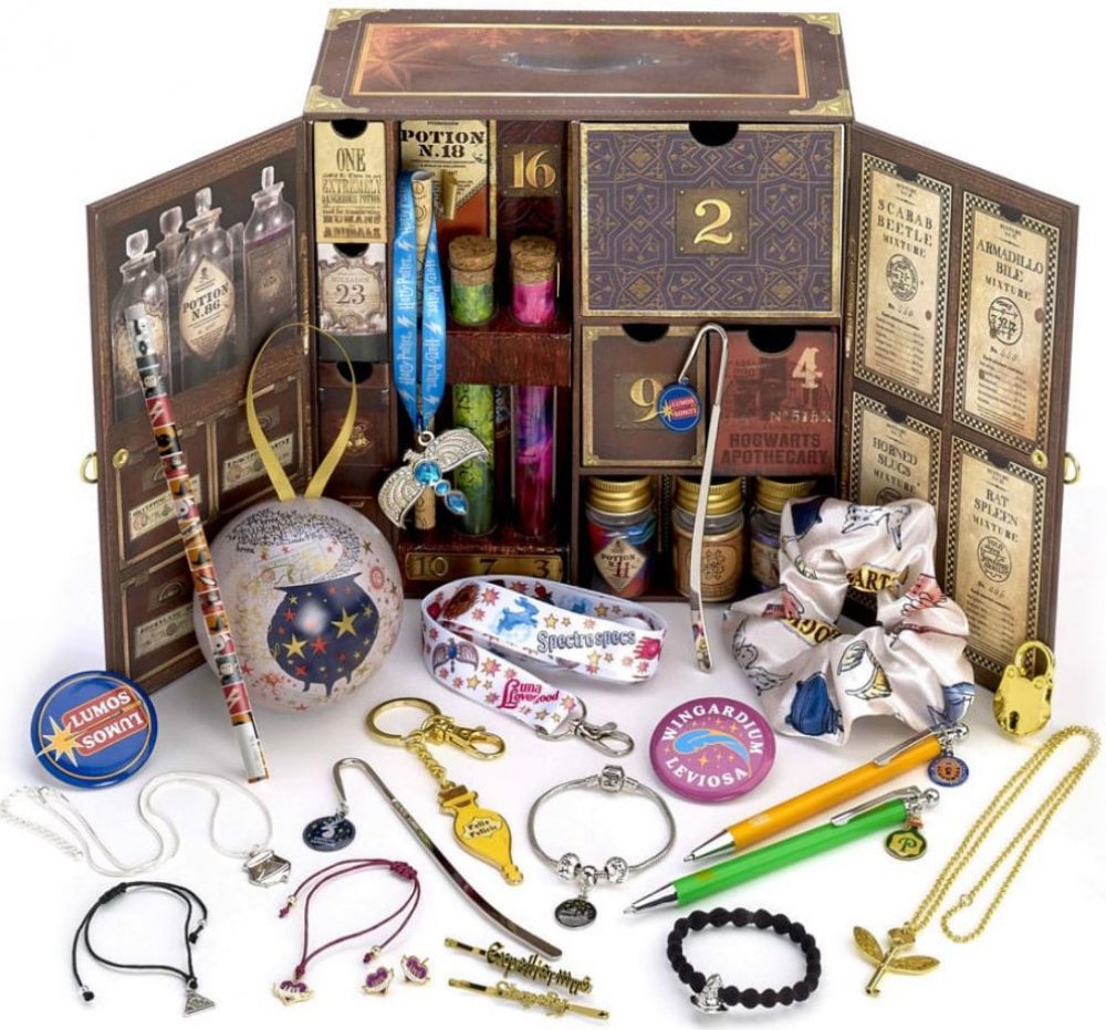 Překvapení jsou ukryta v tajných zásuvkách; zkumavky a lahvičky s lektvary a kalendář se dokonce zamyká speciálním klíčem. Obsahuje exkluzivní náhrdelník, šperky, doplňky a další.