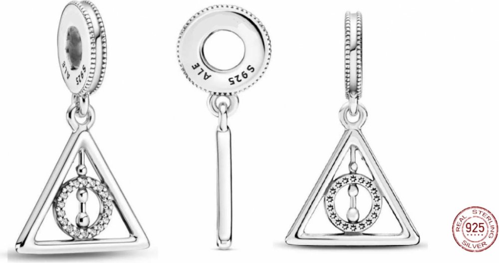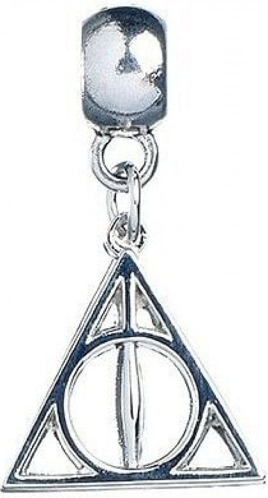 Přívěsek na krk Relikvie smrti / Deathly Hallows. Symbol Relikvií smrti (v originále Deathly Hallows) se skládá z ikonického zobrazení tří samotných relikvií: Bezová hůlka (svislá čára), Kámen vzkříšení (kruh) a Neviditelný plášť (trojúhelník). Relikvie se na svět dostaly jako dar od samotné Smrti. Ta je darovala třem bratrům (Antioch, Cadmus a Ignotus Peverellovi) za to, že díky kouzlům přechytr...