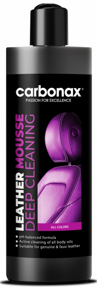 CARBONAX® Leather Mousse je speciálně vyvinuta pro čištění kožených interiérů automobilů. Bezpečné použití na pravou i umělou kůži. Hloubkově čistí špínu, tělové oleje, skvrny od jídla a nápojů. Toto složení s vyváženým pH udržuje váš interiér čistý bez poškození kůže.