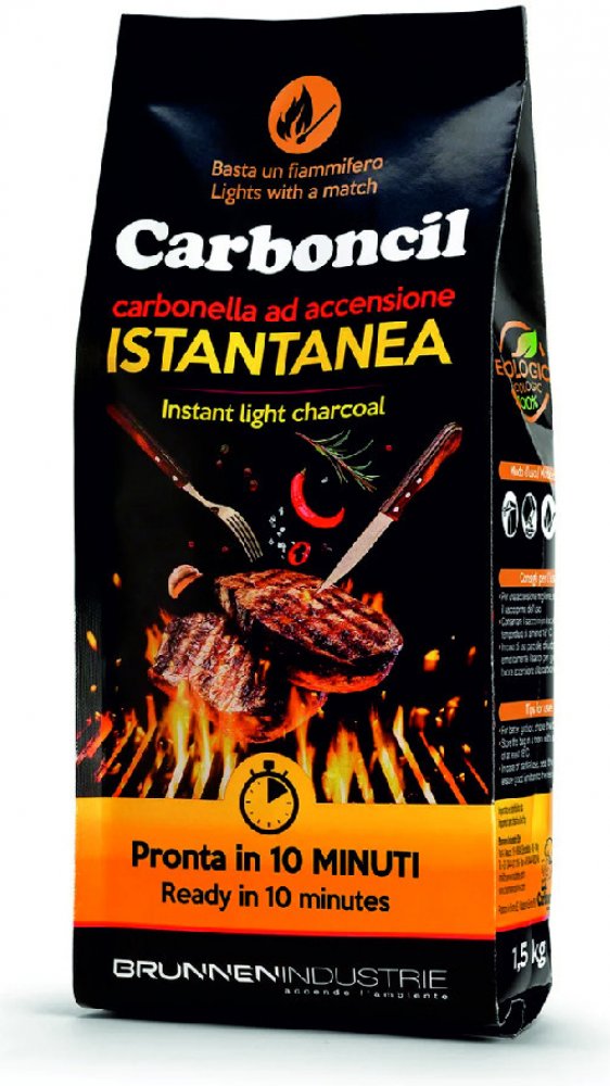 Carboncil" INSTANT dřevěné uhlí – nový typ uhlí s vysokým výkonem a výhřevností, které obsahujeekologickou kapalinu získanou fermentací přírodních látek, což zajišťuje snadné zapálení."Carboncil" jepřipravené za 10 minut a je ideální pro perfektní grilování.