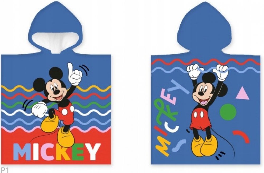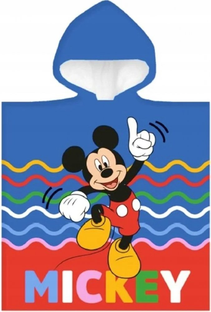 Dětská bavlněná osuška s kapucí / dětské pončo Disney - motiv Mickey Mouse. Toto osuškové pončo je vyrobené z příjemně jemného a dobře savého 100% bavlněného froté s gramáží 320 gr./m². Je ideální nejen na doma po koupeli, ale i na koupaliště, nebo na pláž třeba na dovolené u moře. Rozměry tohoto chlapeckého ponča Disney jsou 50 x 110 cm (přední část 50 x 55 cm + záda 50 x 55 cm), je tedy vhodné spíše pro menší děti.
