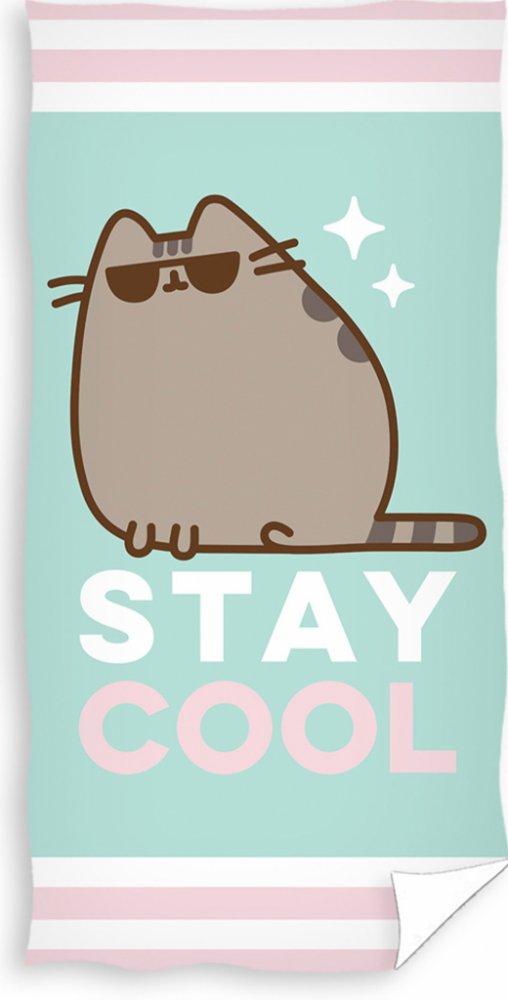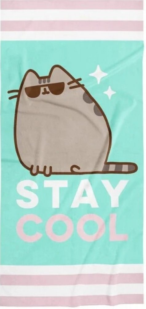 Roztomilá osuška s kočičkou Pusheen. Ručník je tyrkysové barvy a je na něm stylová šedá kočka Pusheen se slunečními brýli, pod ní je nápis Stay Cool. Za každé situace zachovej tvář a zůstaň v pohodě. Pusheen tě může doprovázet na výlet k vodě, nebo tě může osušit po horké sprše či vaně.