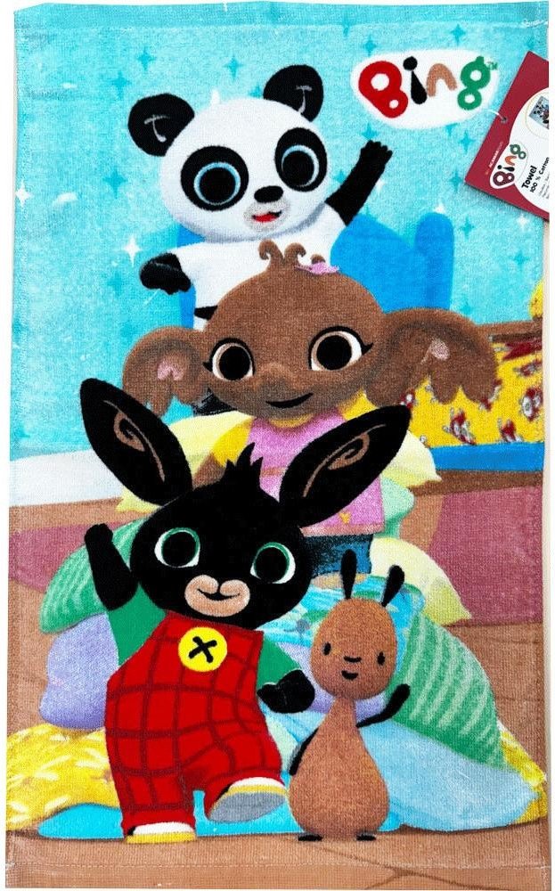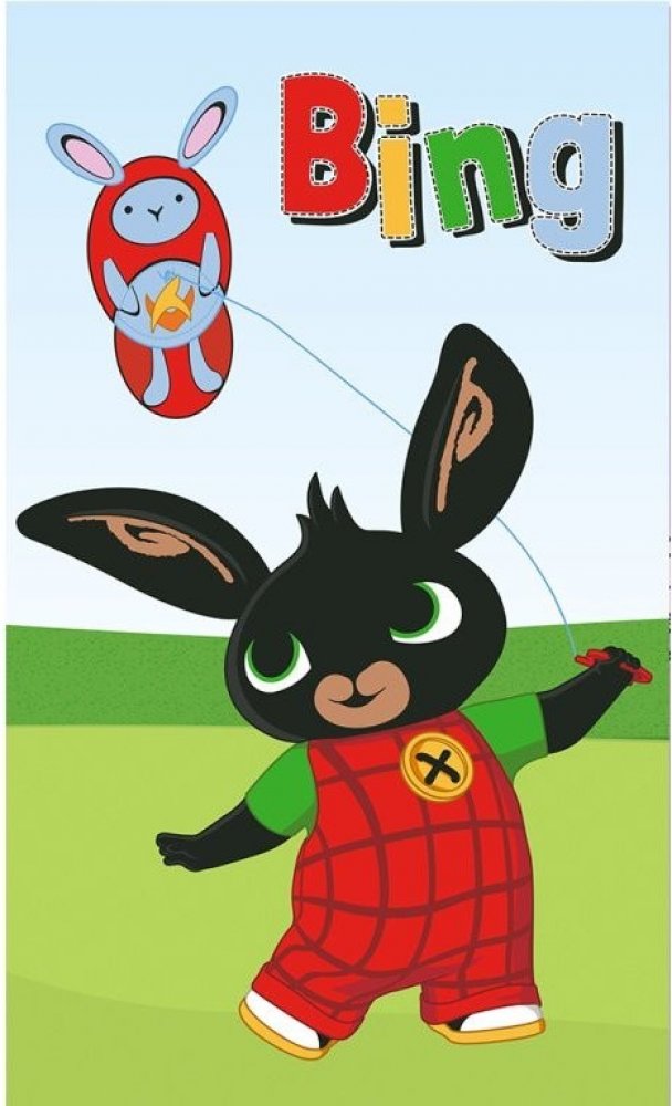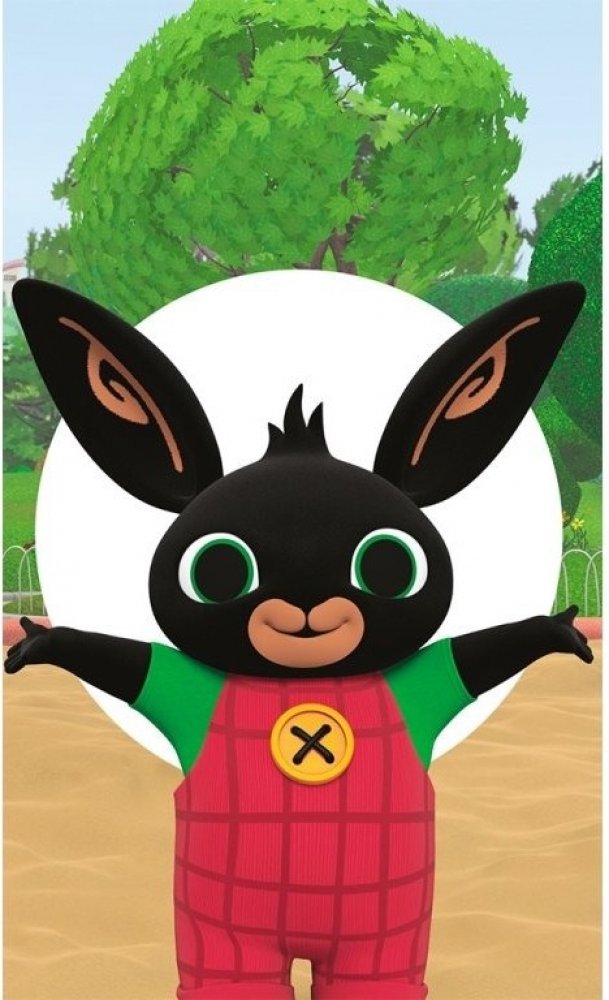 Oficiálně licencovaný dětský ručník černý zajíček Bing s barevným nápisem. Rozměry 30 x 50 cm. Materiál je 100% bavlna.