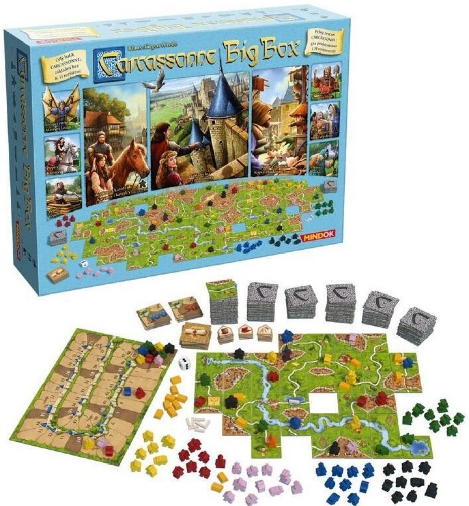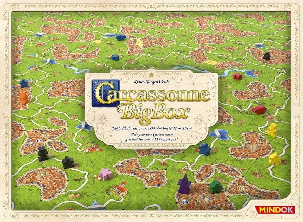 Big Box je balení základní hry Carcassonne společně s jedenácti rošířeními. Ve velké krabici najdou fanoušci Carcassonne legendární základní hru, dále dvě velká rozšíření a devět malých.
