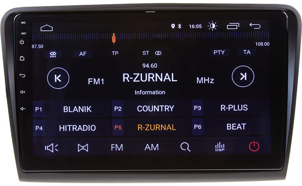 - rádio s RDS, AM: 522 KHz - 1620 KHz; FM: 87,5 MHz - 108.0 MHz