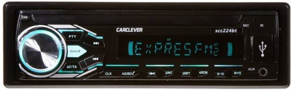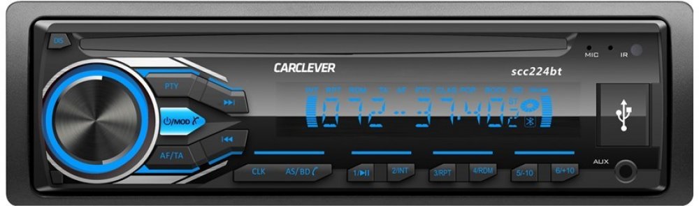 Autorádio s FM / AM, bez mechaniky s SD + USB, čelním AUX vstupem a technologií Bluetooth.