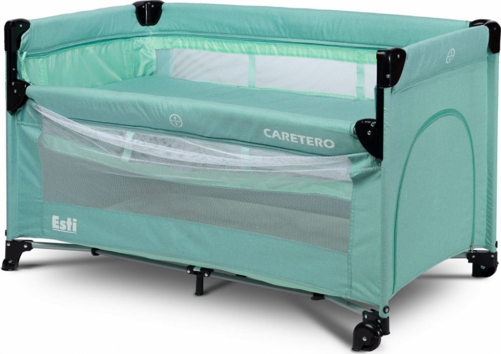 - Cestovní postýlka se stahovací bočnicí, ESTI - mátová - Cestovní postýlka se stahovací bočnicí Esti Caretero - mint.